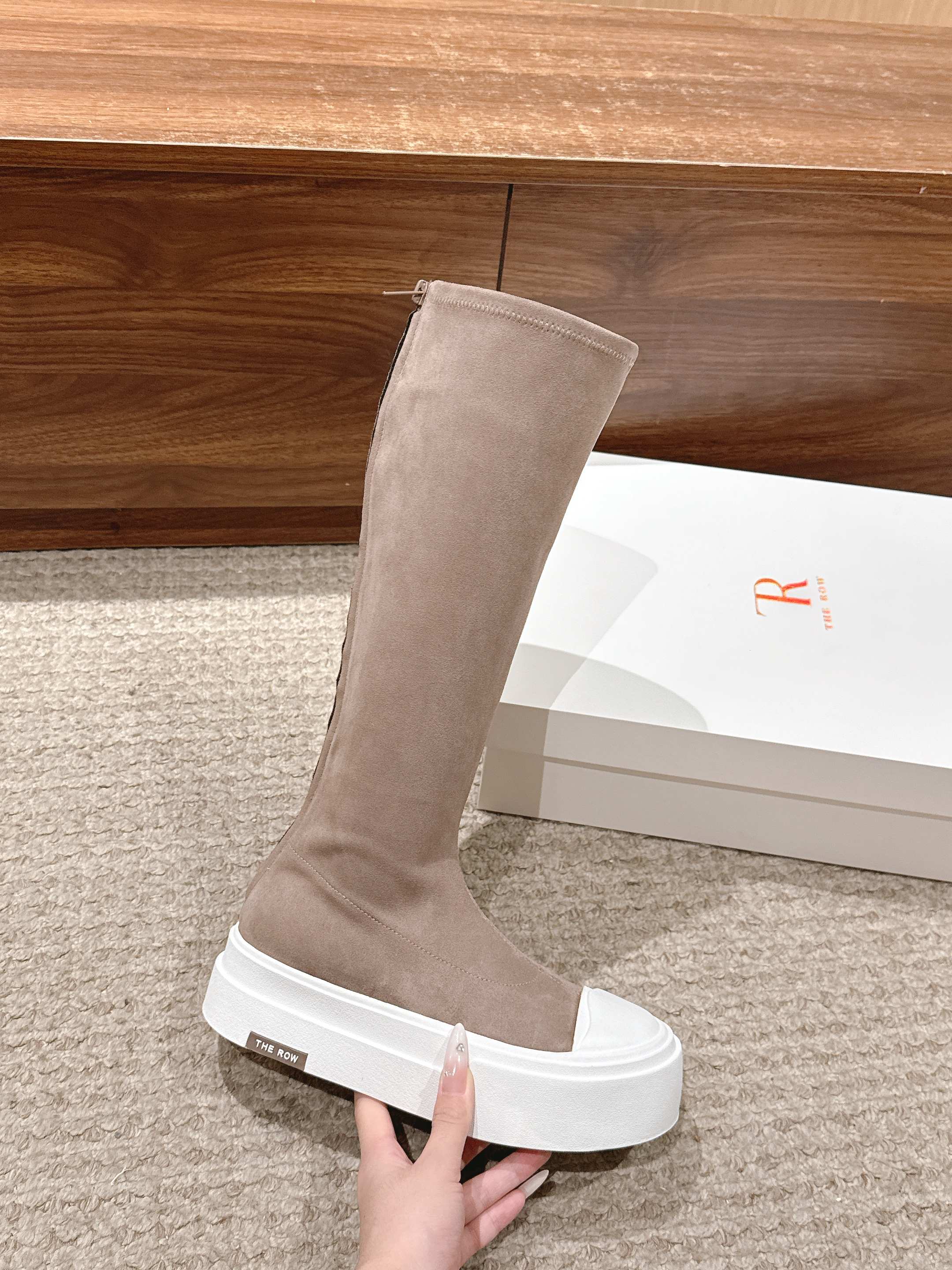 The Row Thick-soled Classic Knee-high Boots Light Brown White Suede 444172