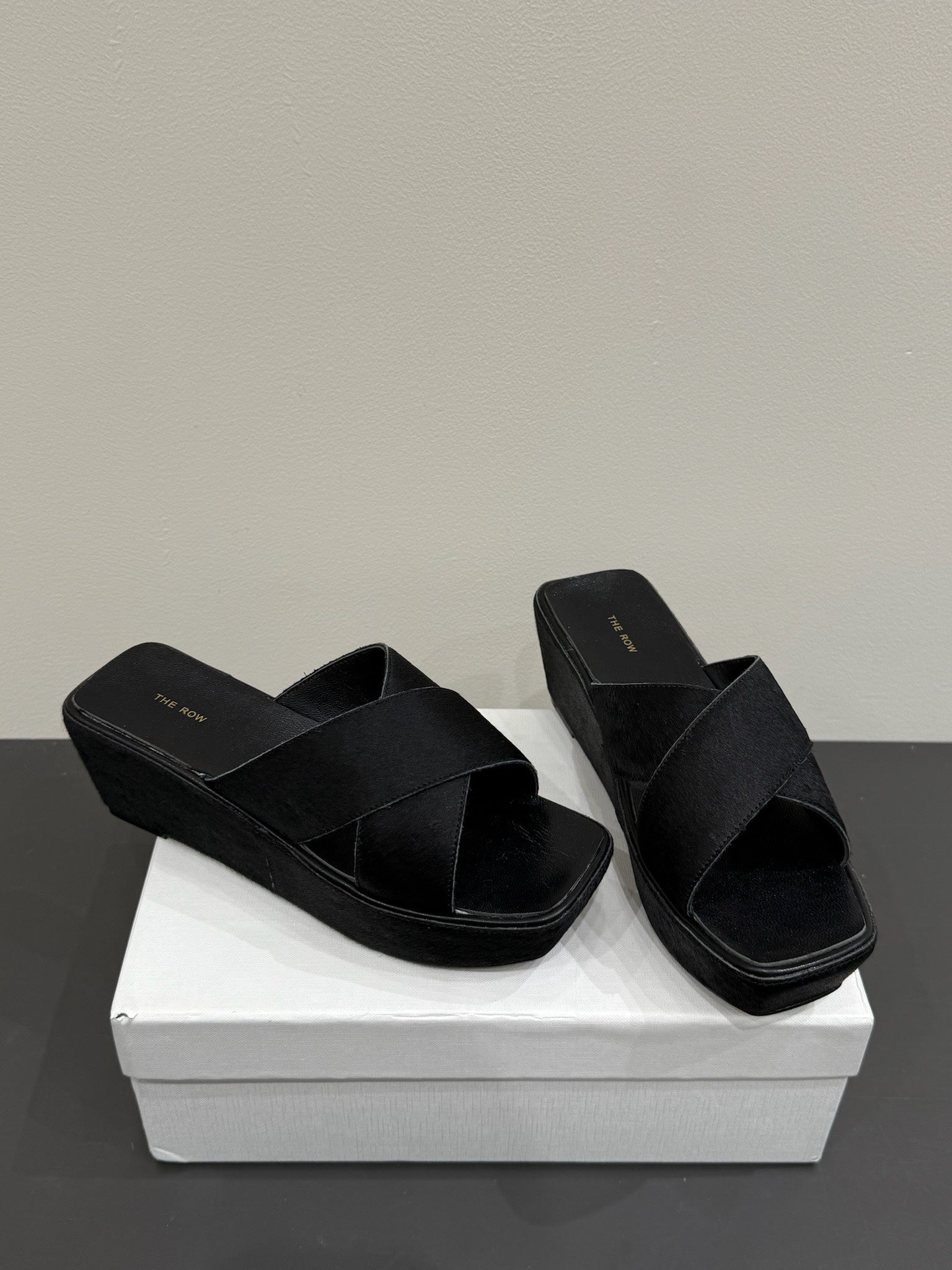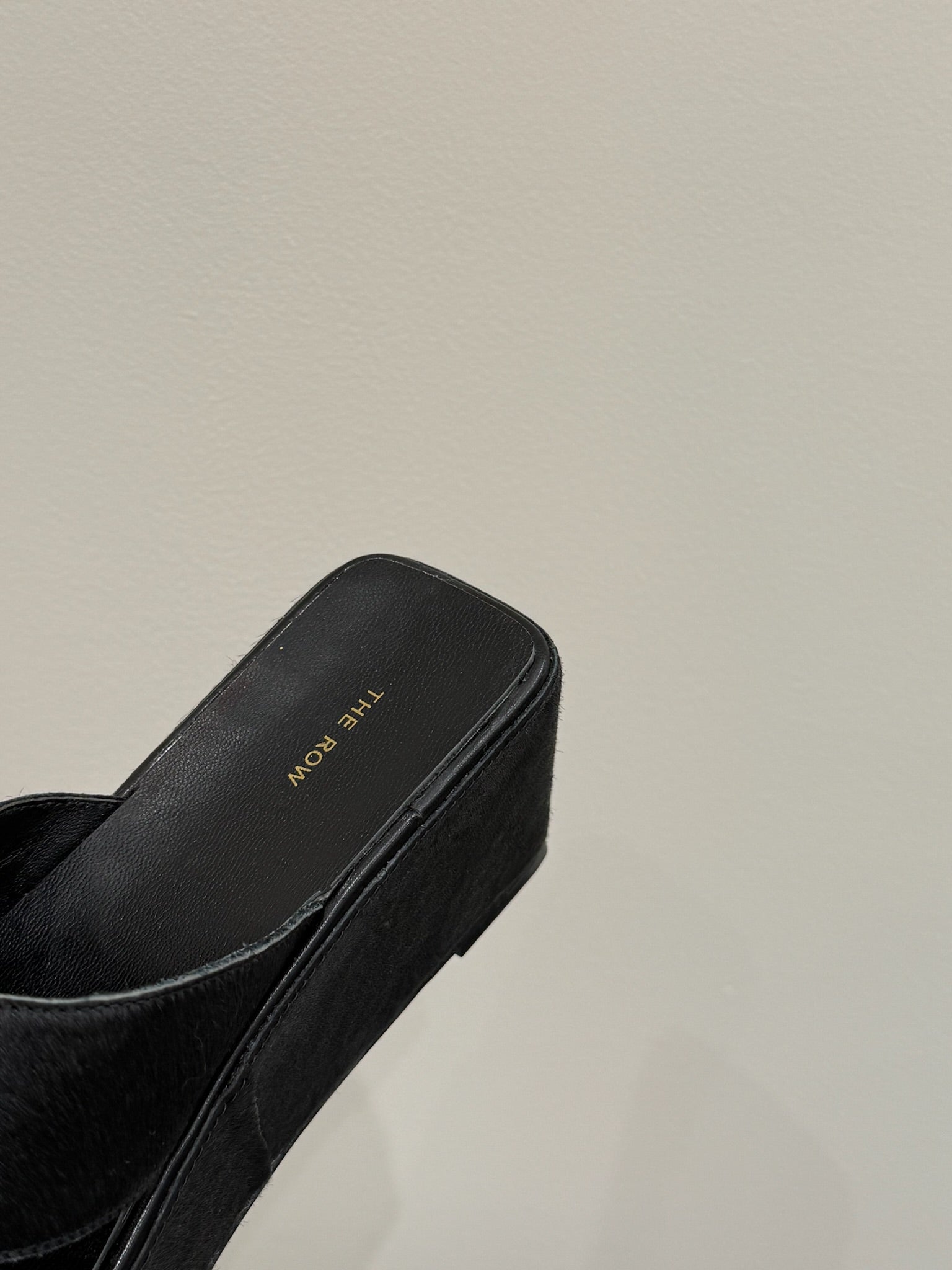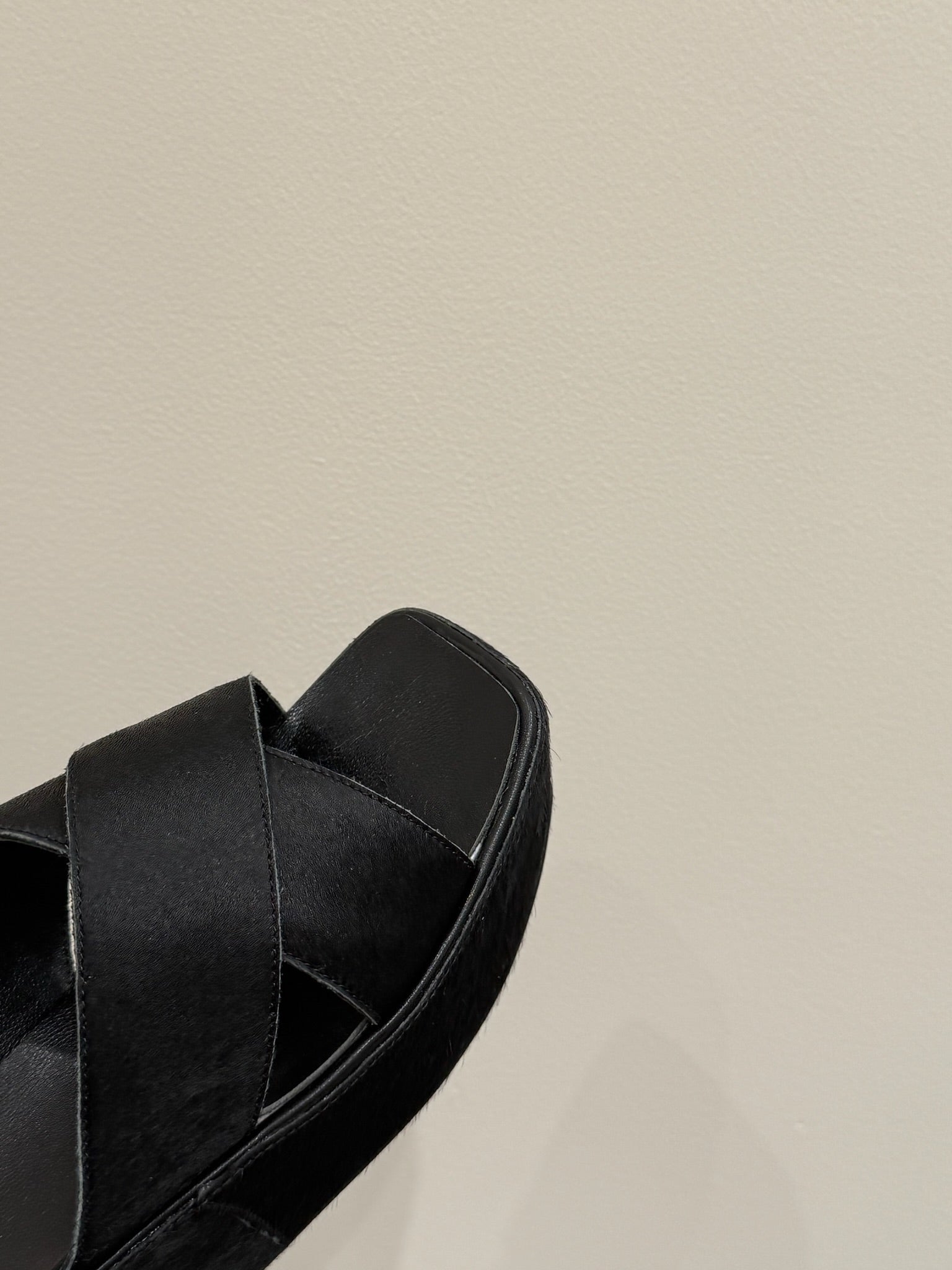The Row Thick-soled Cross-strap Sandals 6cm Black Horsehair 337448