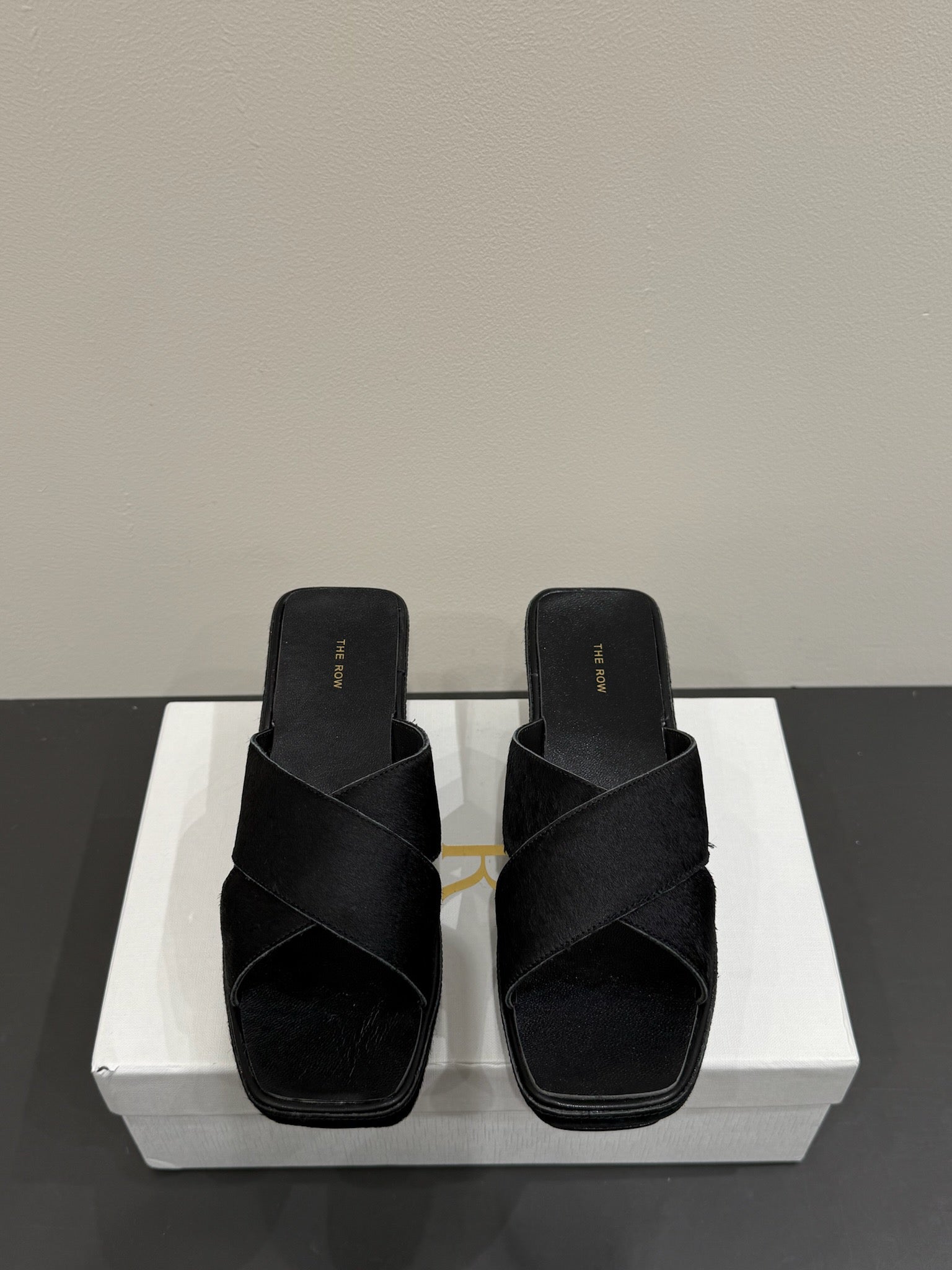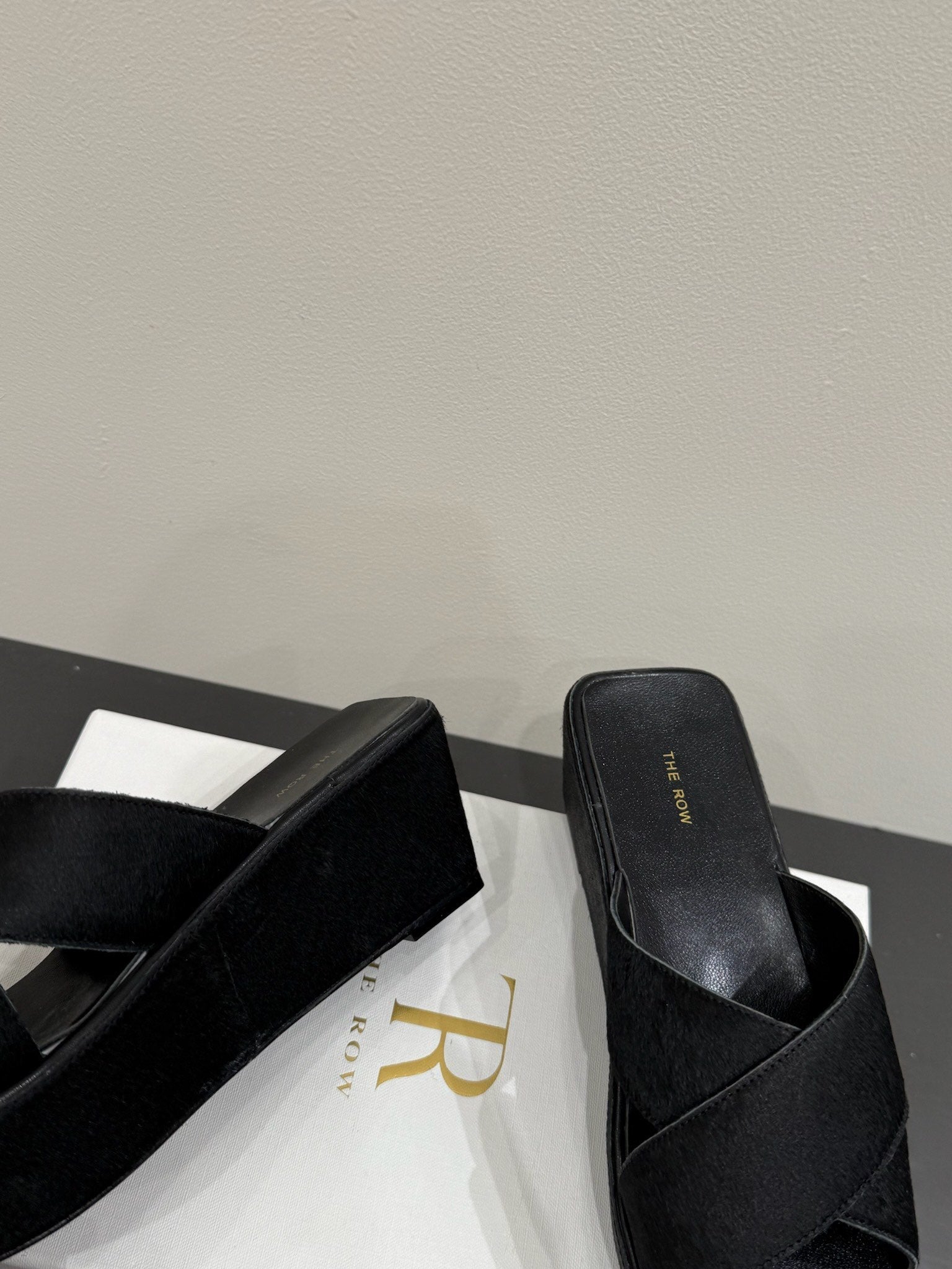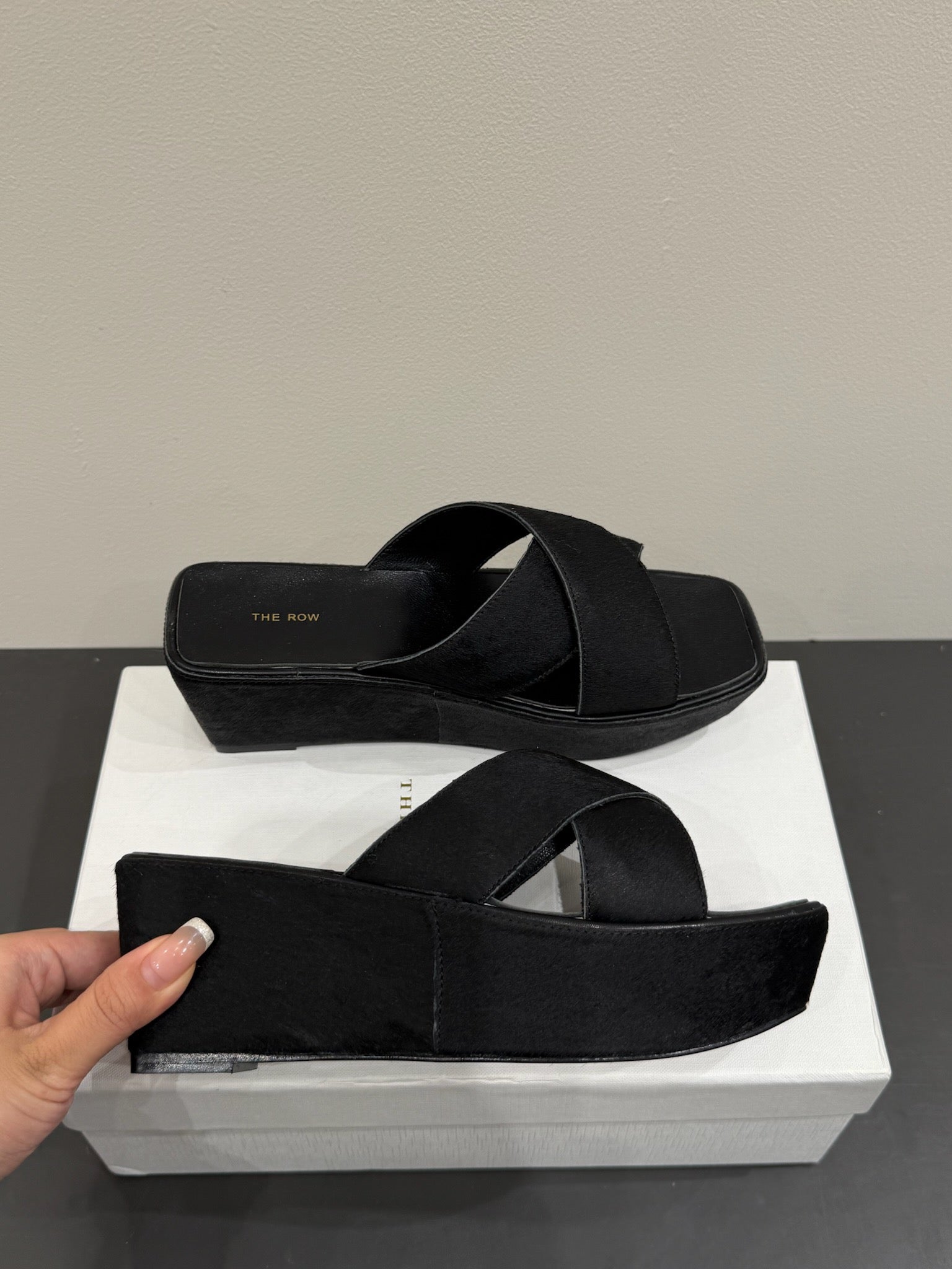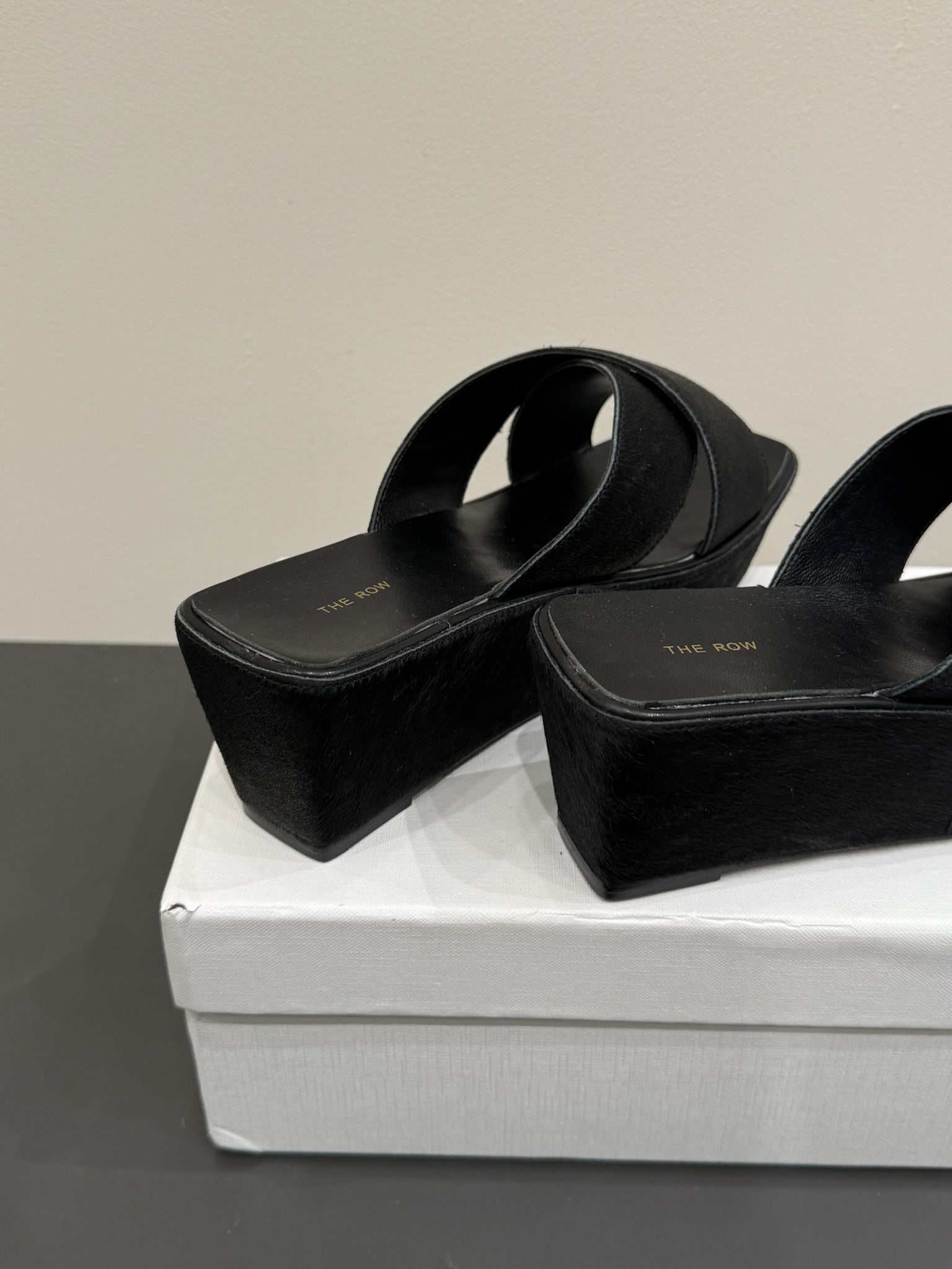 The Row Thick-soled Cross-strap Sandals 6cm Black Horsehair 337448