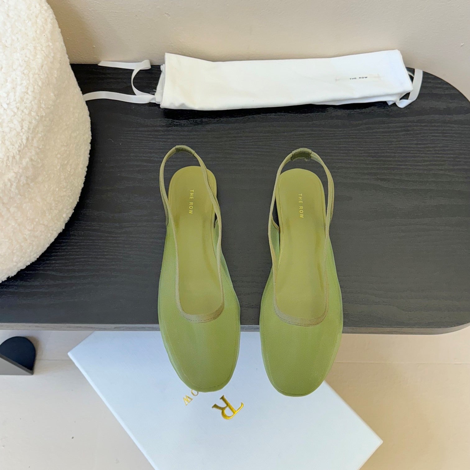 The Row Slingback Flat 10mm Green Mesh And Sheepskin 334167