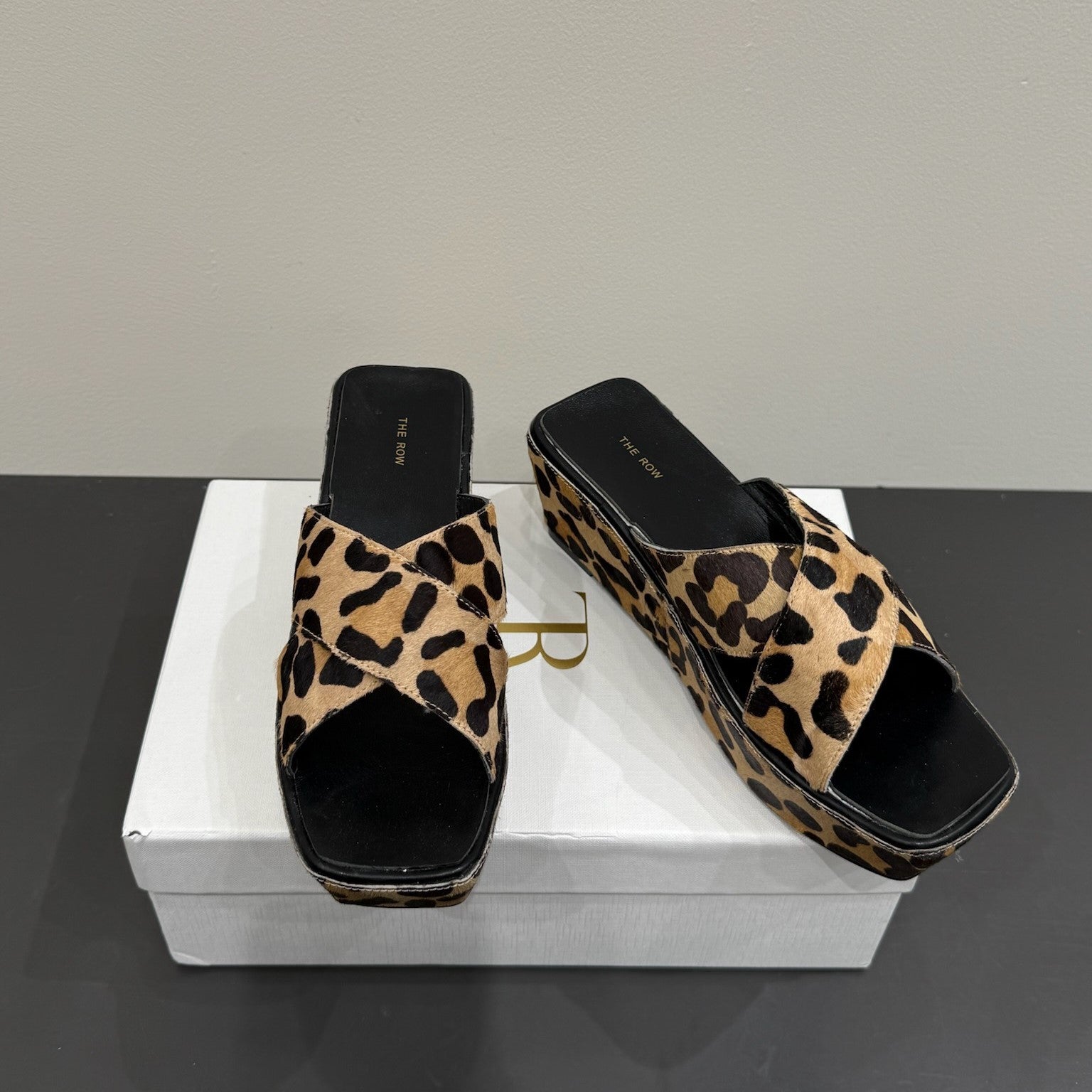 The Row Thick-soled Cross-strap Sandals 6cm Leopard Print Horsehair 337447