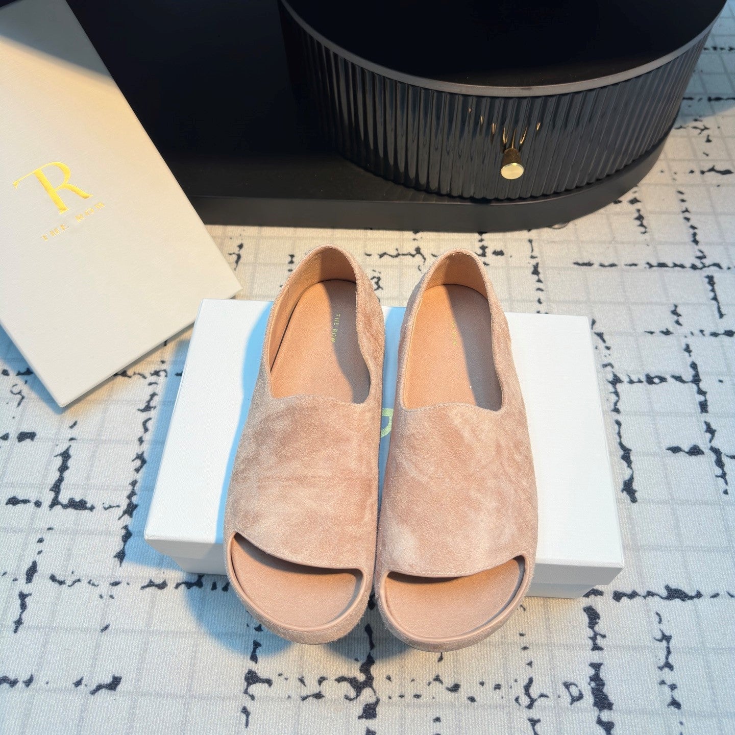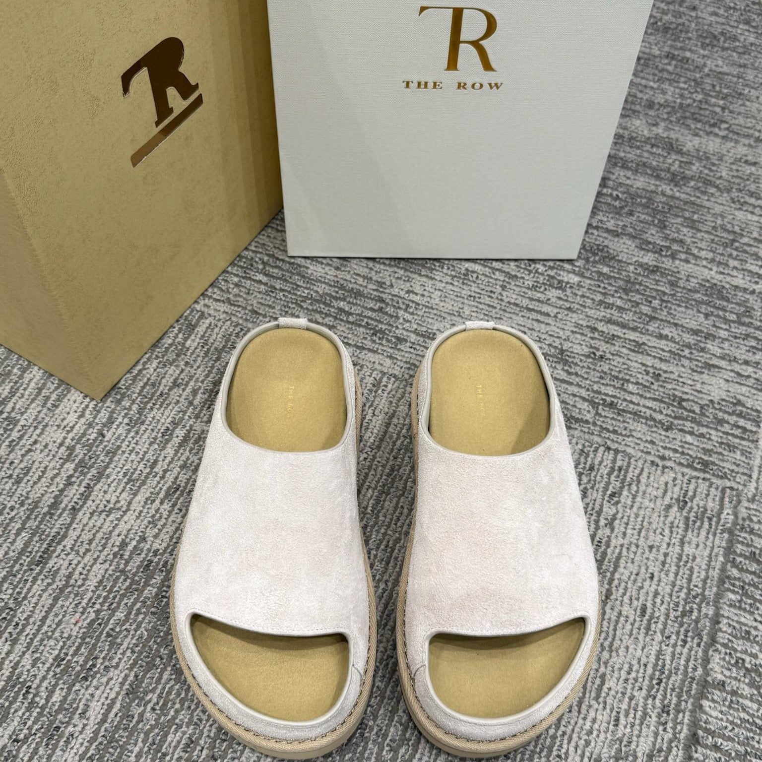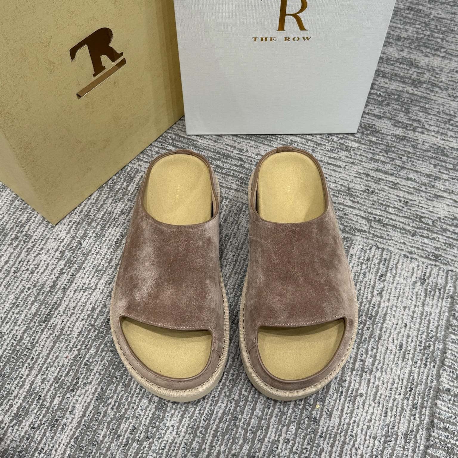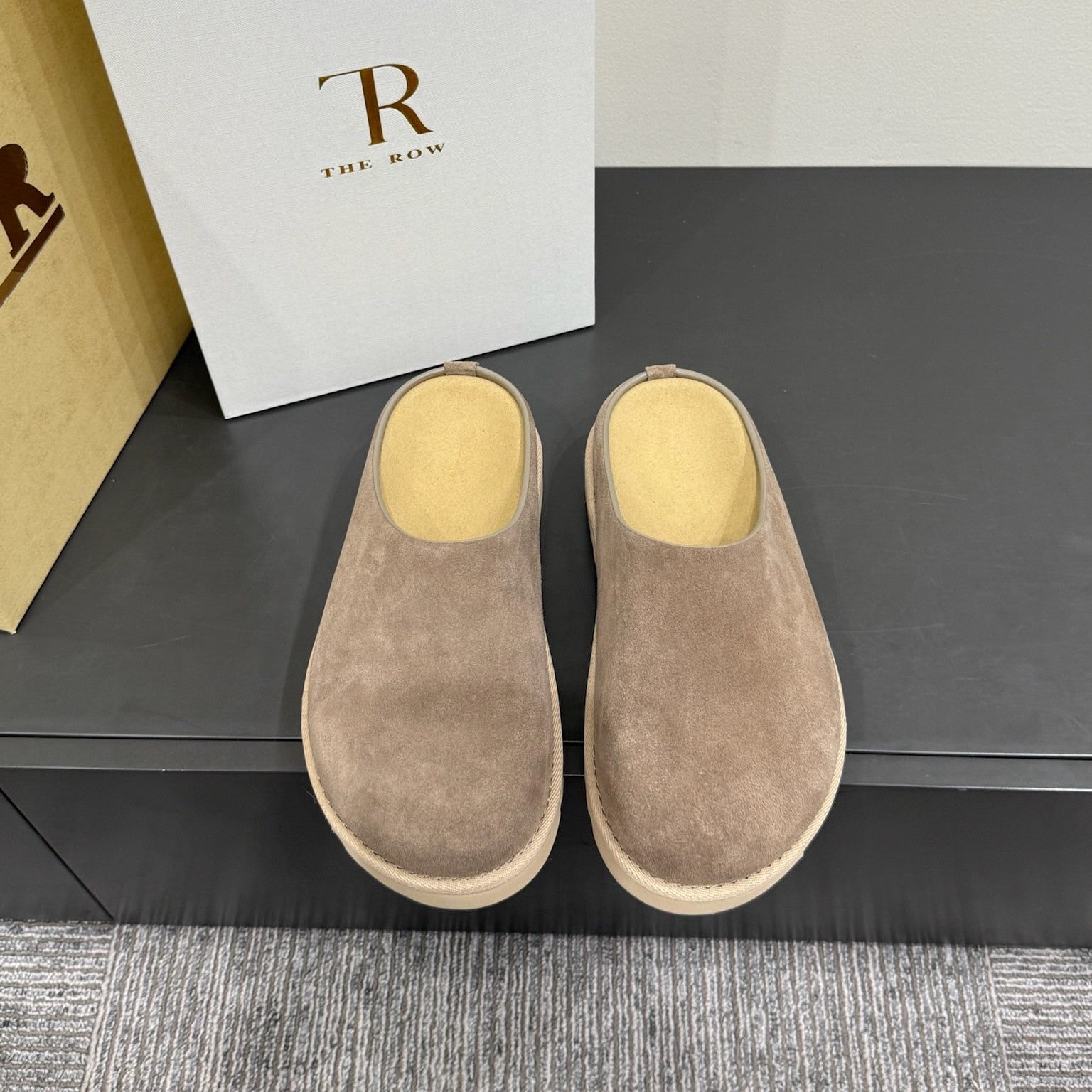 The Row Laser-cut Toe Slippers Taupe Cow Suede 337485