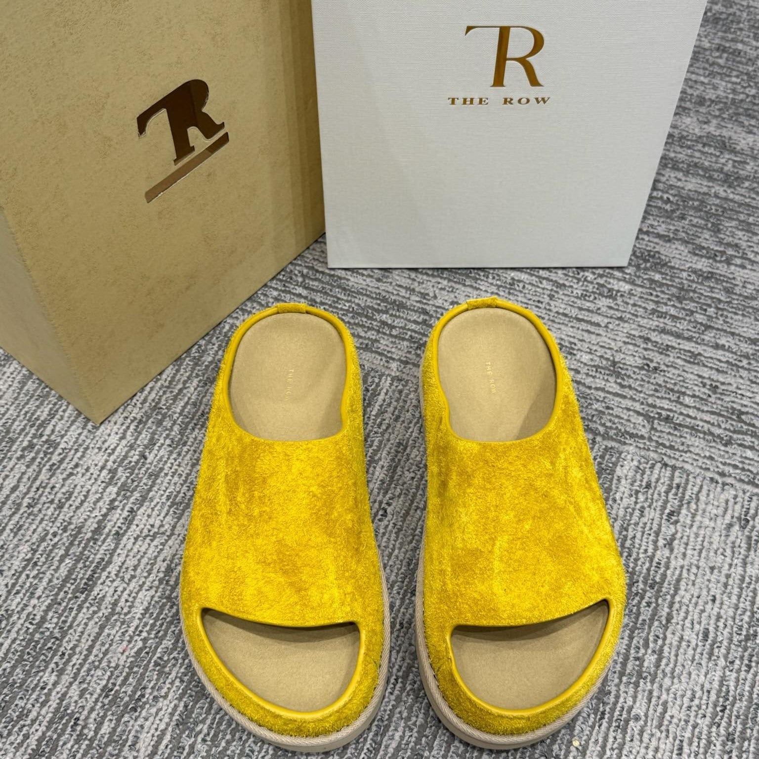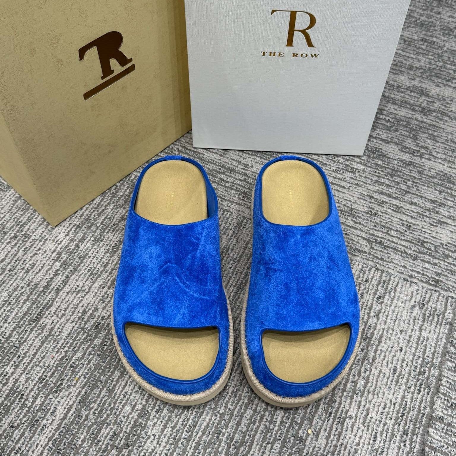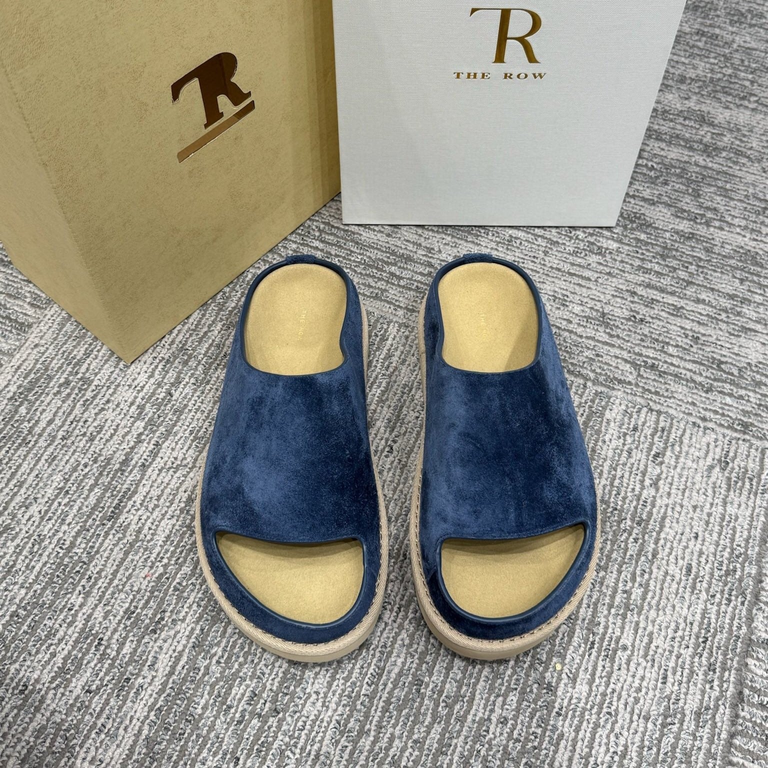 The Row Slide Sandals Olive Green Cow Suede 337473