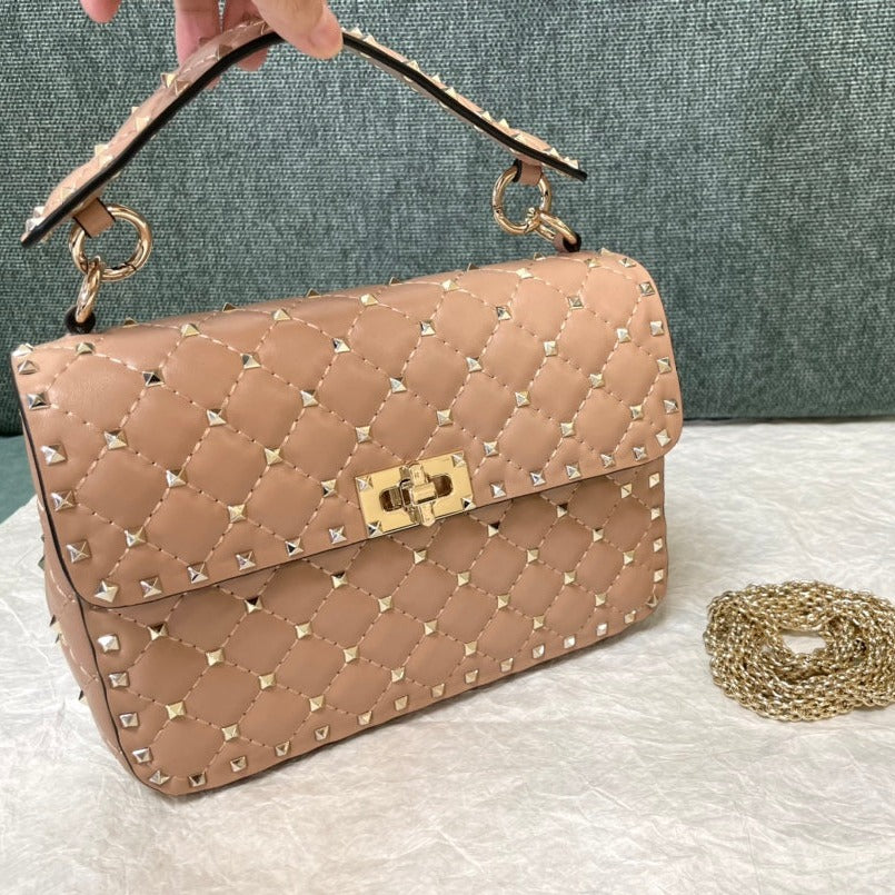 garavani rockstud spike medium 24cm beige lambskin