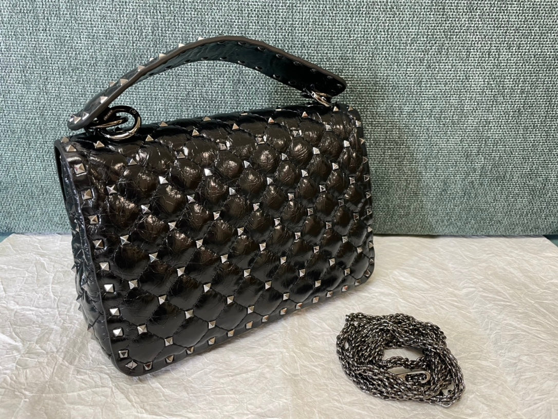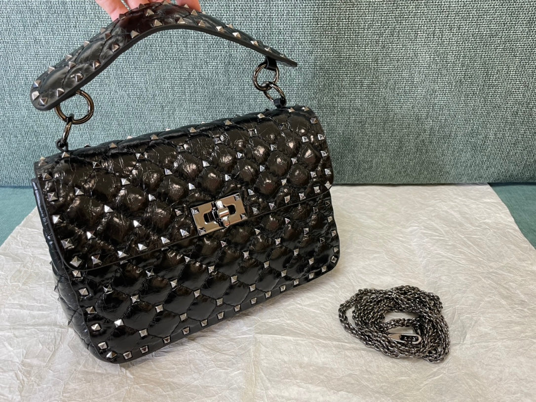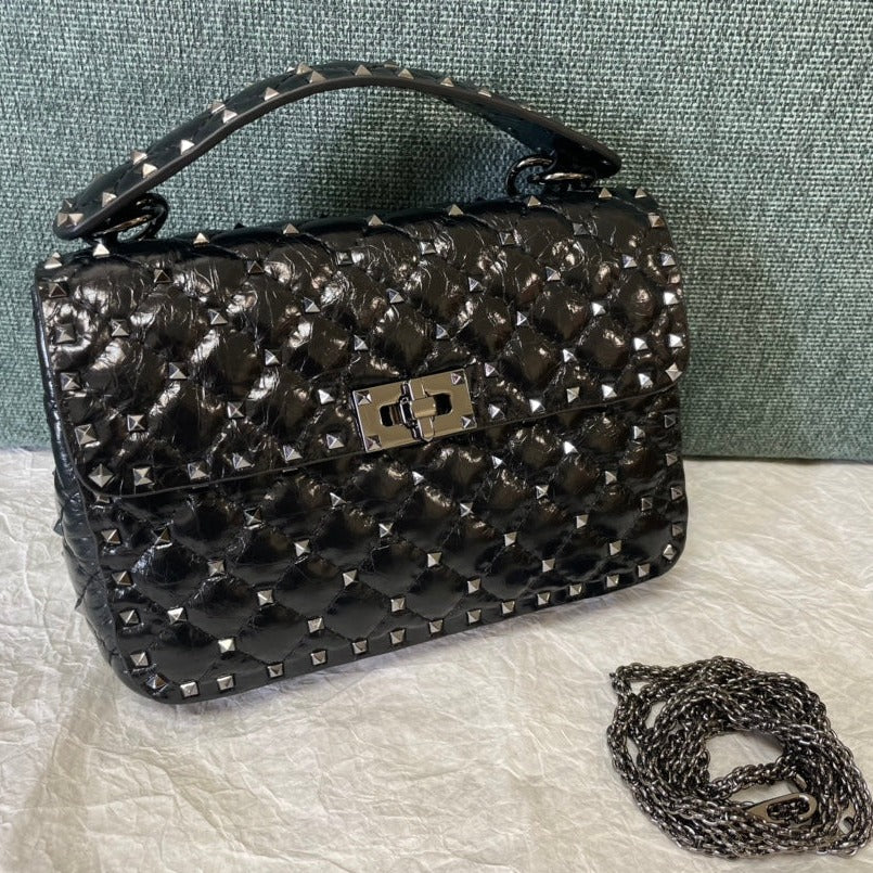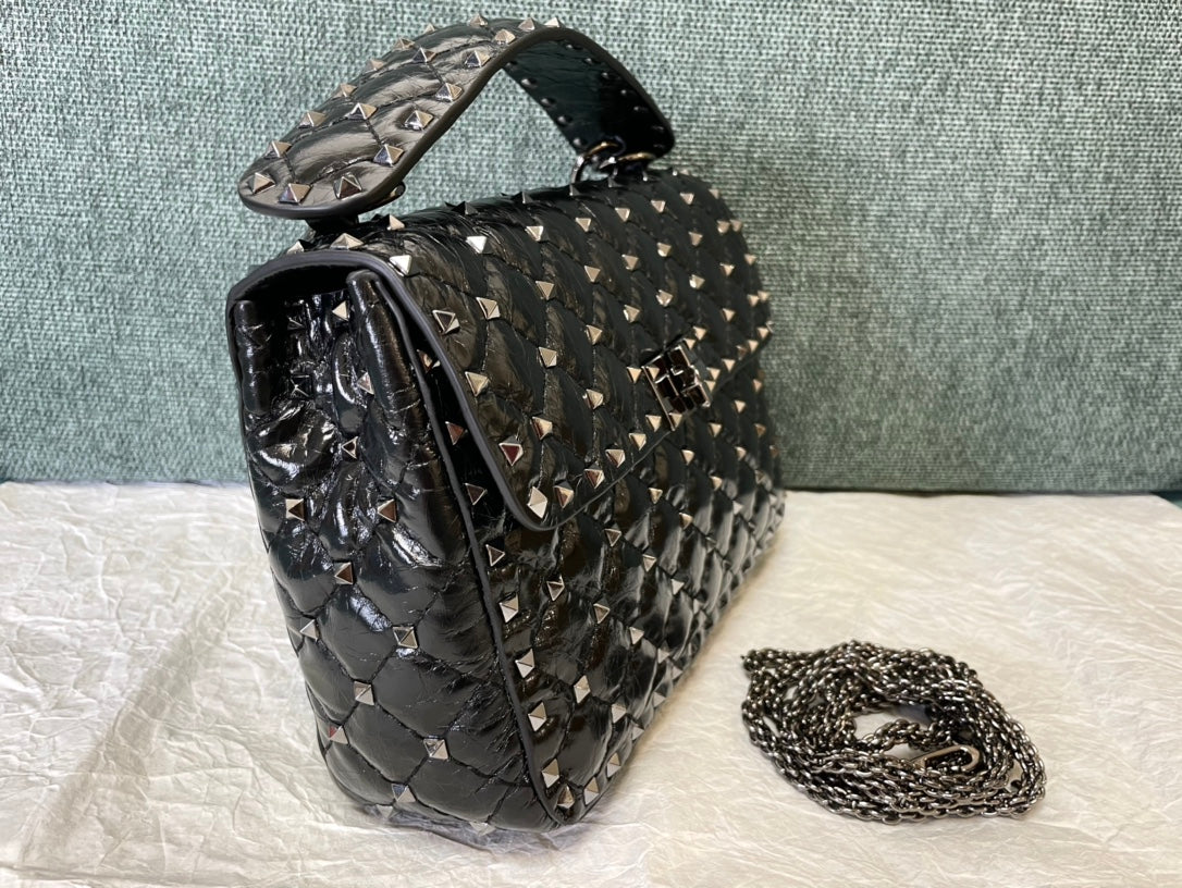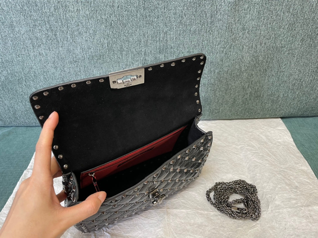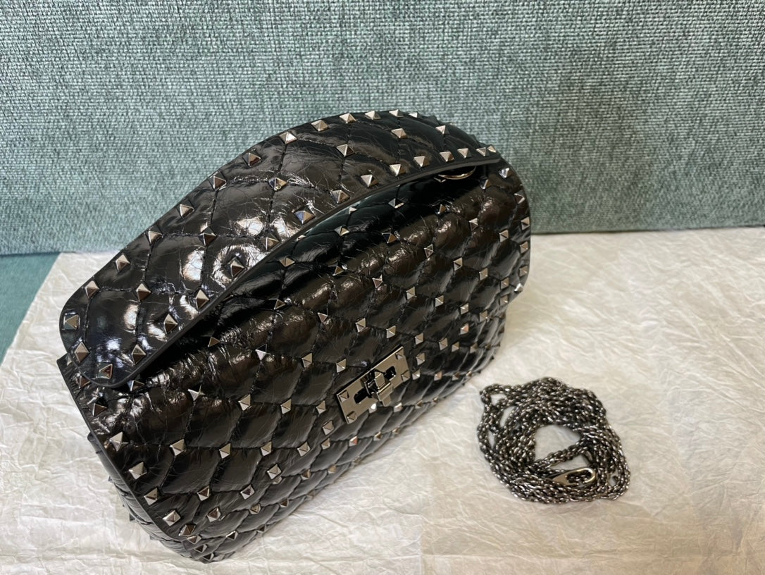 garavani rockstud spike medium 24cm black lambskin
