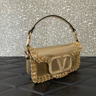 Valentino Loco Embroidered Handbag Gold Leather