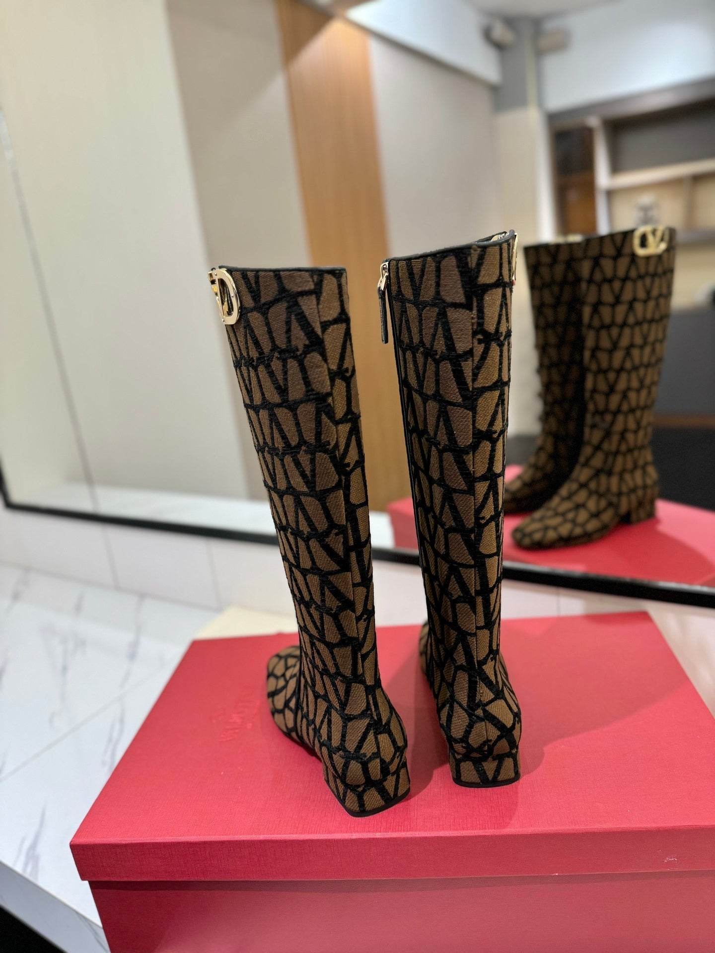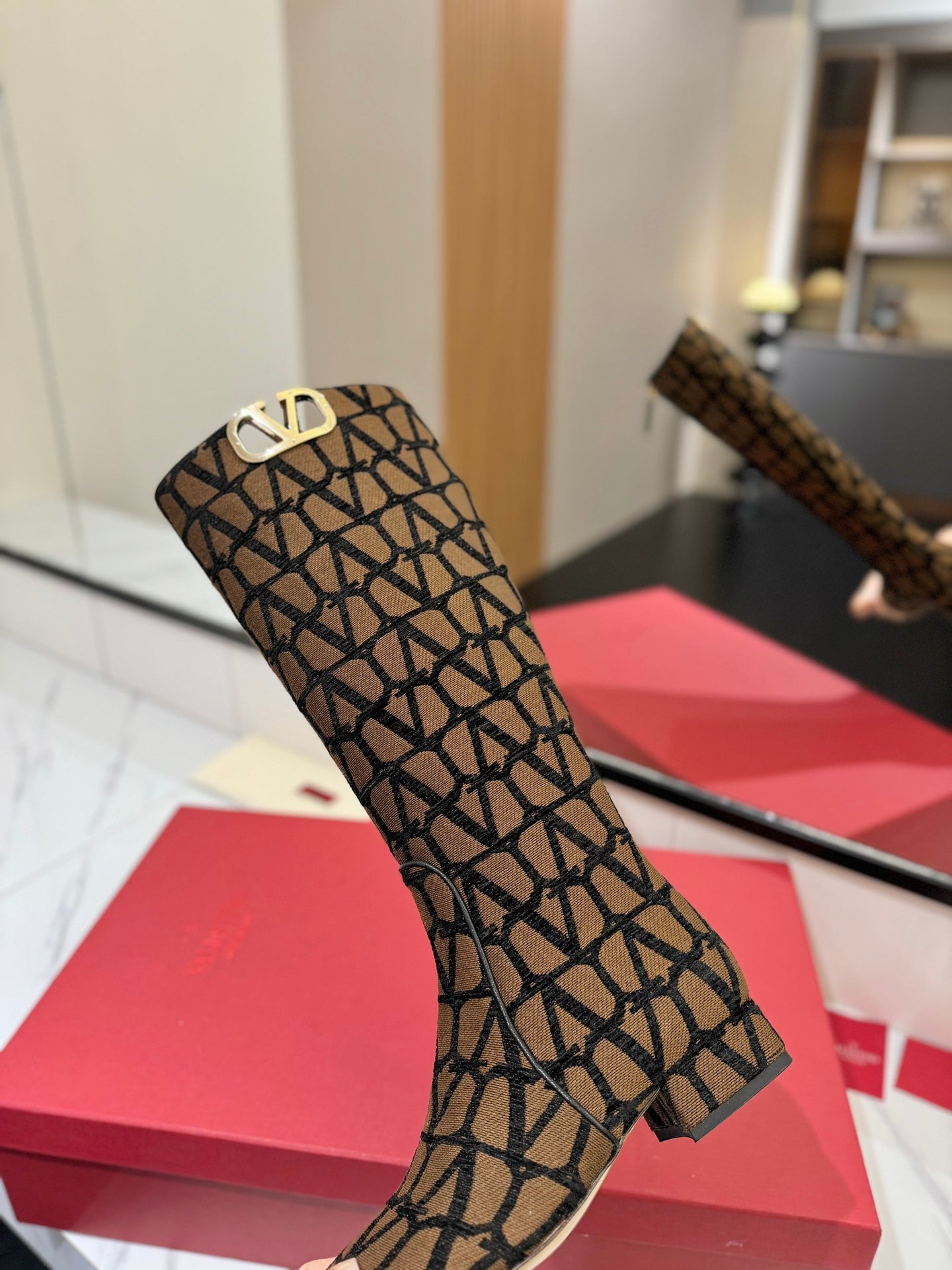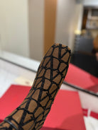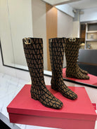Valentino Garavani VLogo Tall Monogram High Boots 30mm In Brown Mix Black Canvas Fabric 992793