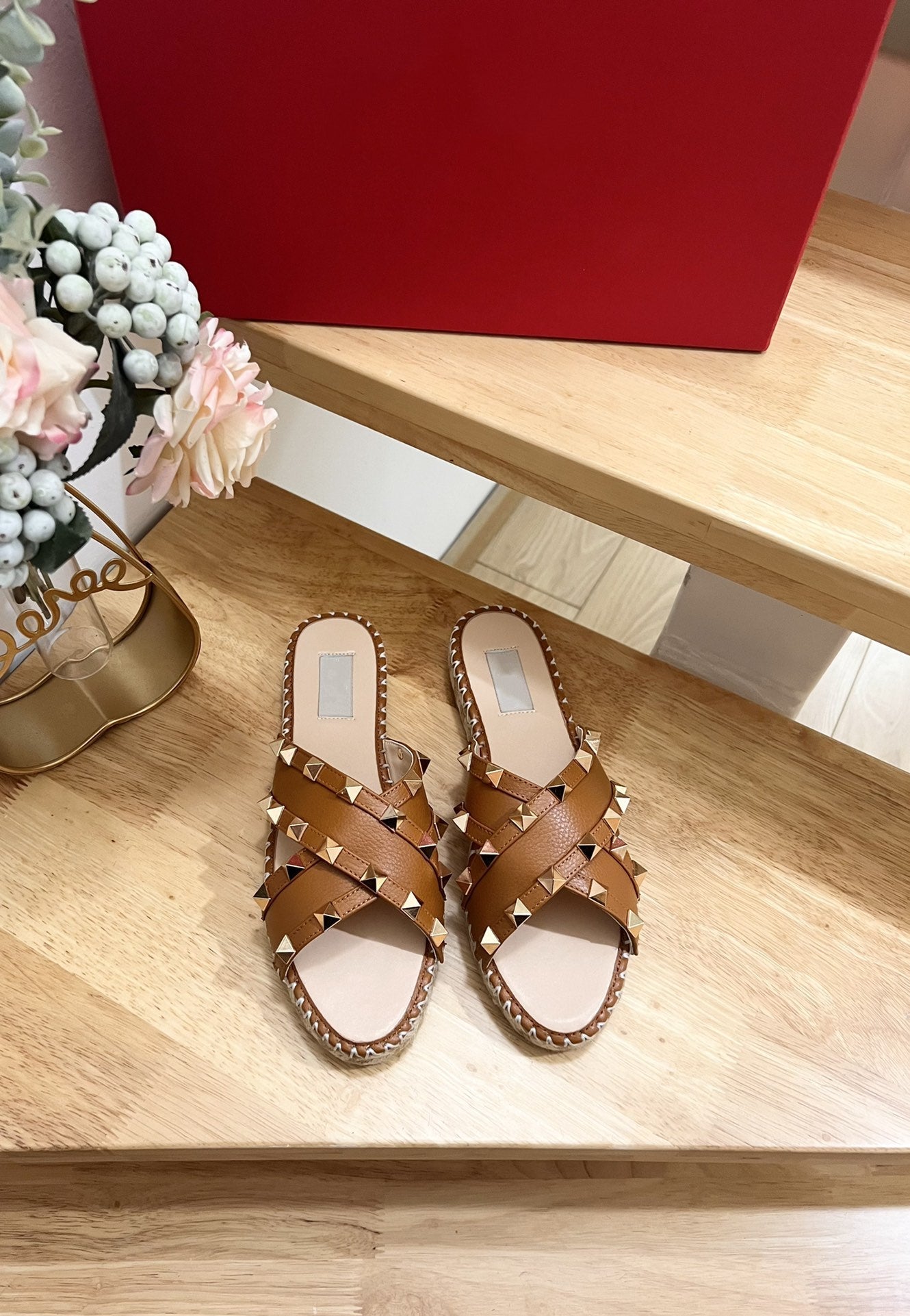 Rockstud Crisscross Espadrilles 20mm Sandal Wedges Tan
