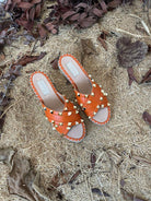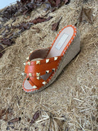 Rockstud Crisscross Espadrilles 80mm Sandal Wedges Orange