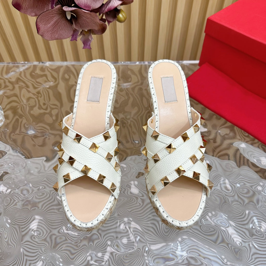 Rockstud Crisscross Espadrilles 80mm Sandal Wedges White