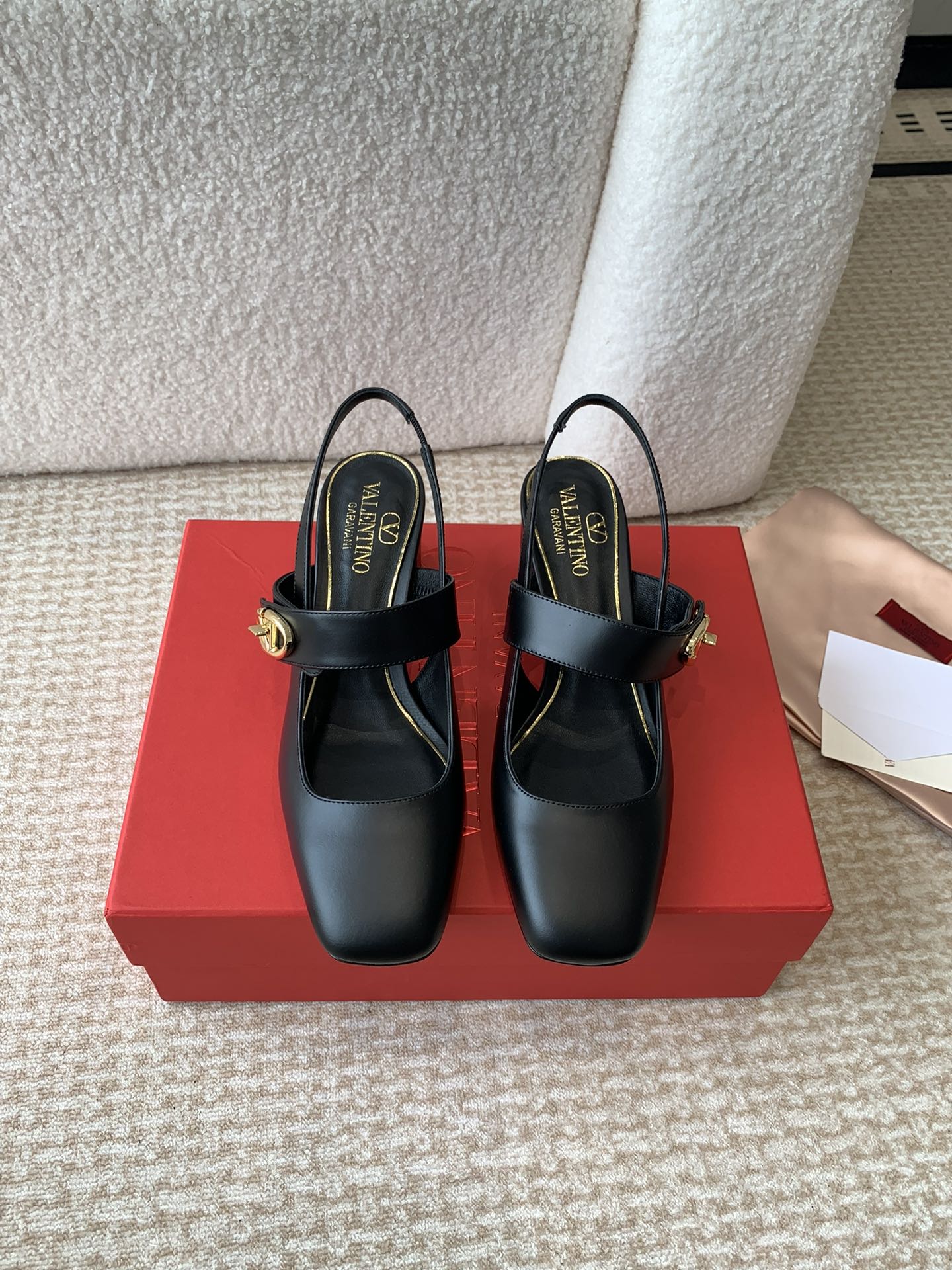 VLOGO LOCKER MARY-JANE SLINGBACK PUMPS IN BLACK CALFSKIN 65 MM