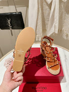 ROCKSTUD ANKLE STRAP WEDGE SANDAL IN YAM ORANGE CALFSKIN LEATHER 95 MM