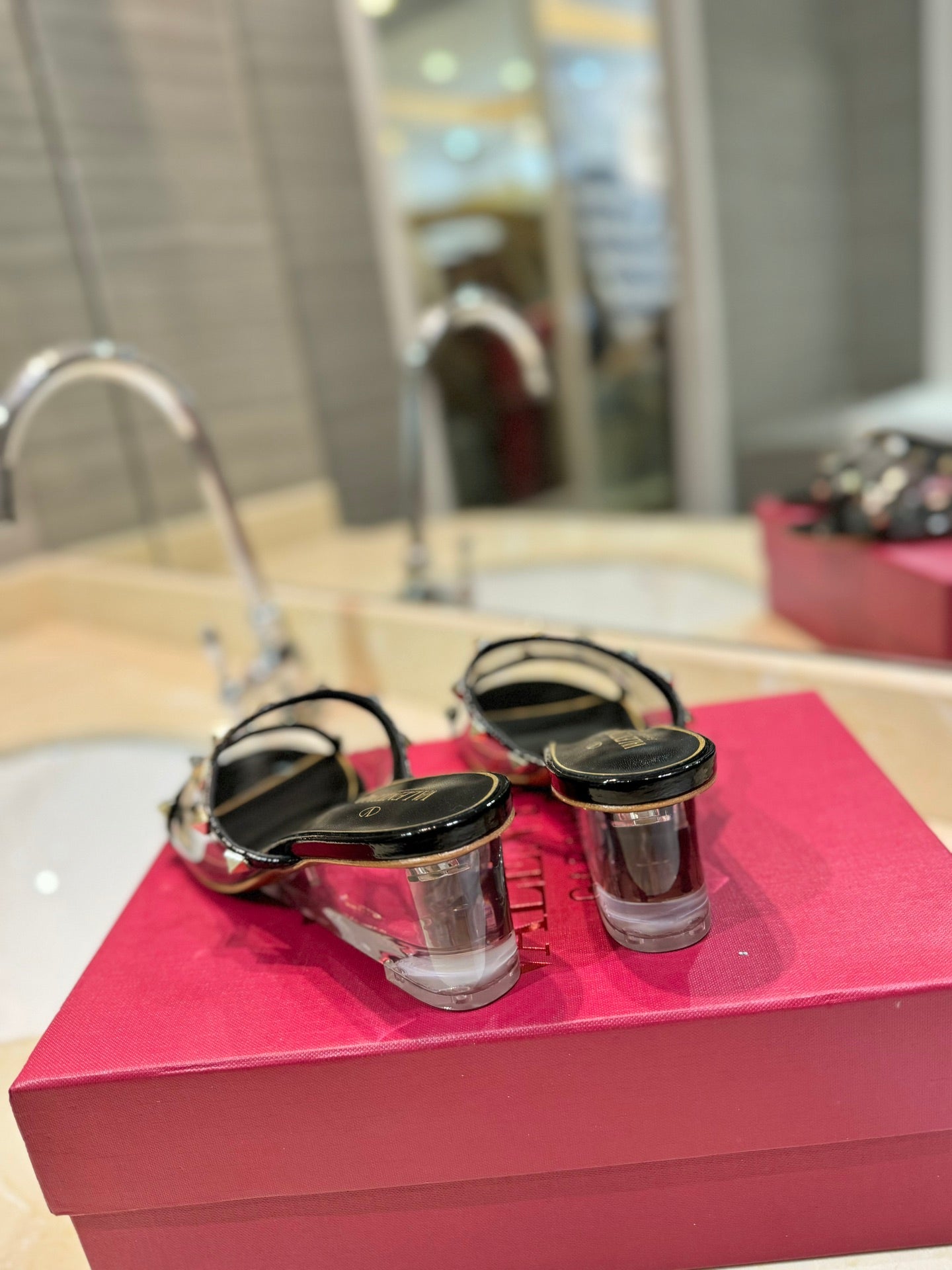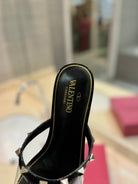 ROCKSTUD MULE SANDALS IN BLACK CALFSKIN AND TRANSPARENT PVC FILM