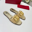 Vlogo embellished leather-trimmed raffia slides gold