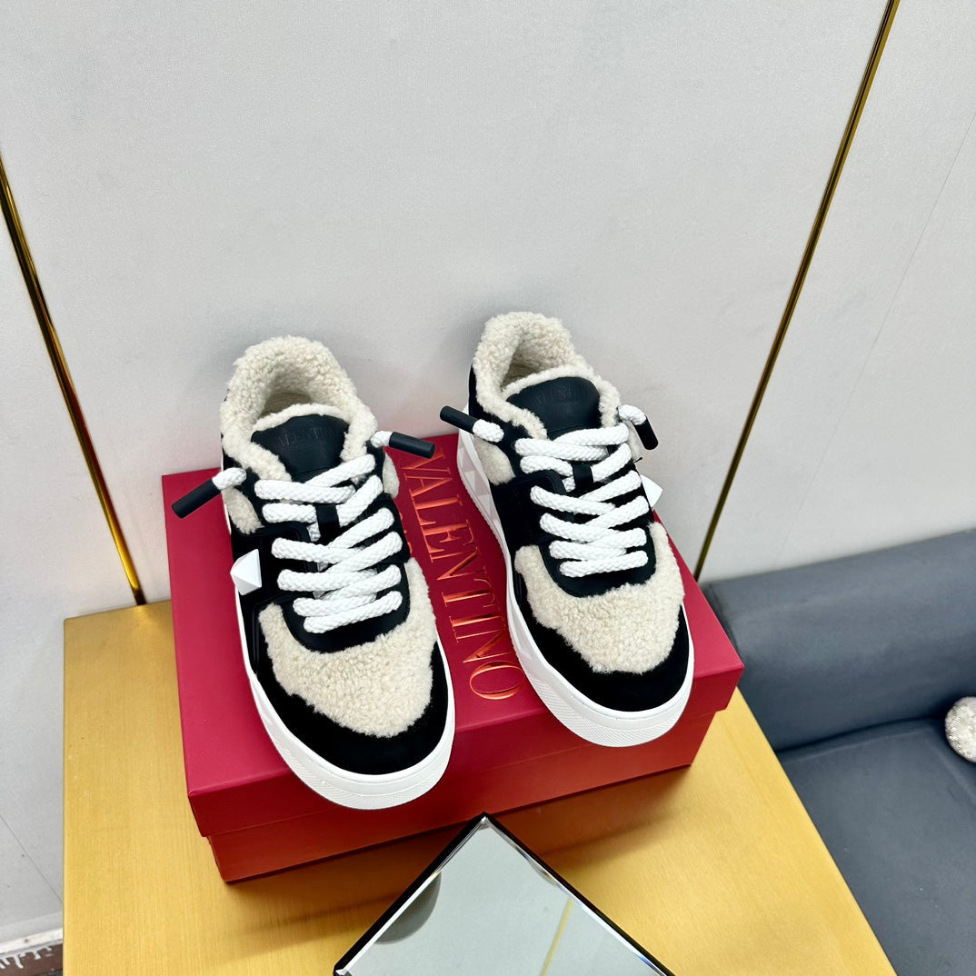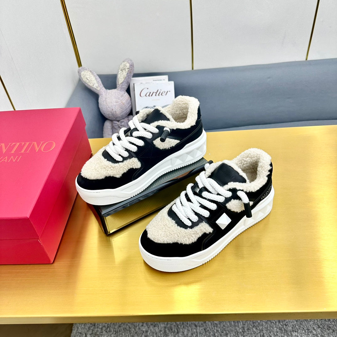 One Stud Xl Trainer 65mm In Black Mix White Suede Lined With Wool Fleece 994610