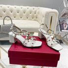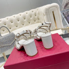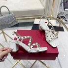 Rockstud 6cm Square Toe White Leather Sandals