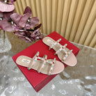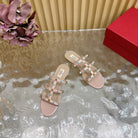 Rockstud Leather Caged Mule Sandals 10mm Pale Pink Sheepskin 307858