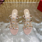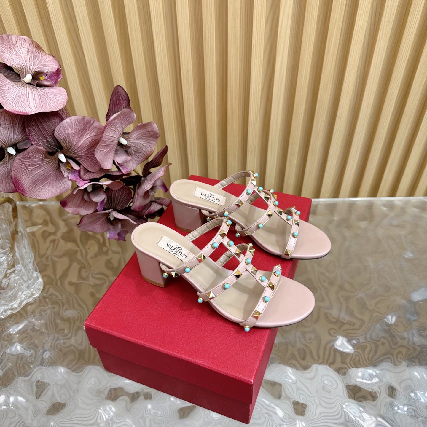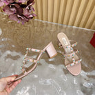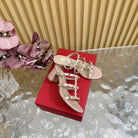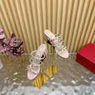Rockstud Leather Caged Mule Sandals 60mm Pale Pink Sheepskin 307861
