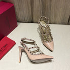 Valentino Rockstud Caged Pumps 100mm Nude Patent Leather 239636