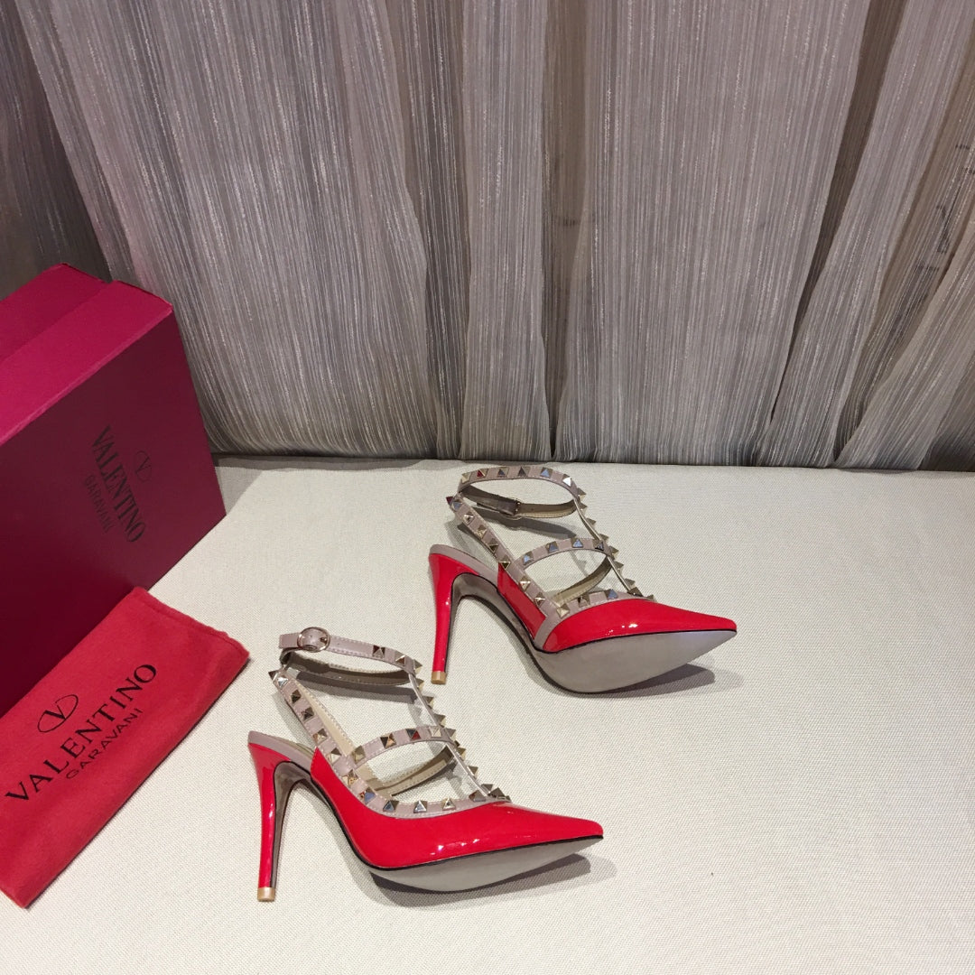 Valentino Rockstud Caged Pumps 100mm Red Patent Leather 239632
