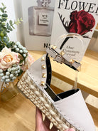 Valentino Rockstud Espadrille Sandals Beige Gray Leather 240598