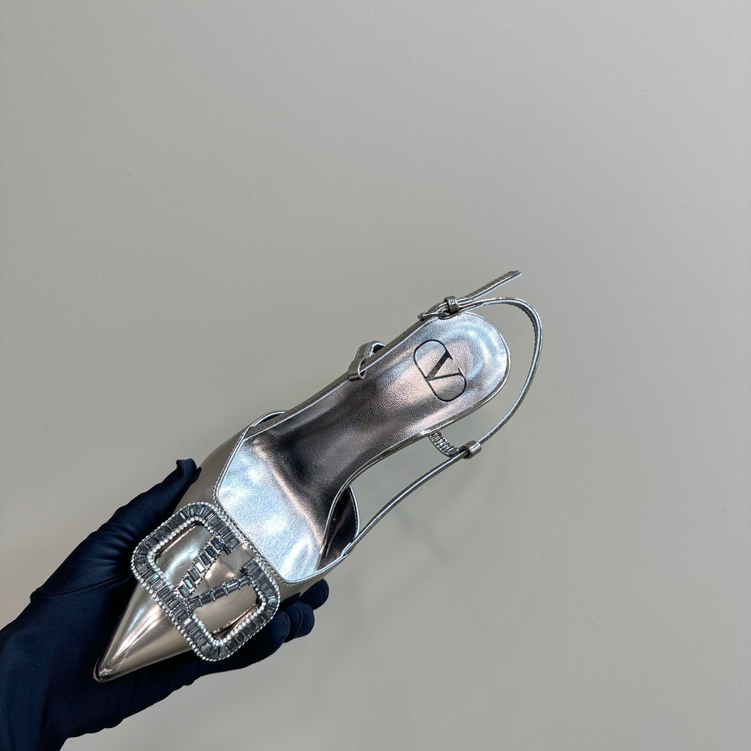 Vlogo Glow Laminated Nappa Leather Slingback Pump 100mm Dark Silver 999053