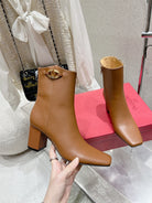 VLOGO SIGNATURE COPPER BROWN CALFSKIN ANKLE BOOT 75 MM