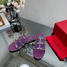 VT 25 Rockstud Flat Sandals Purple PVC Sheepskin
