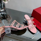 VT 25 Rockstud Sandals 65mm Pink PVC Sheepskin