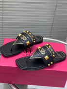 VT Rockstud Thong Sandals Black Cowhide