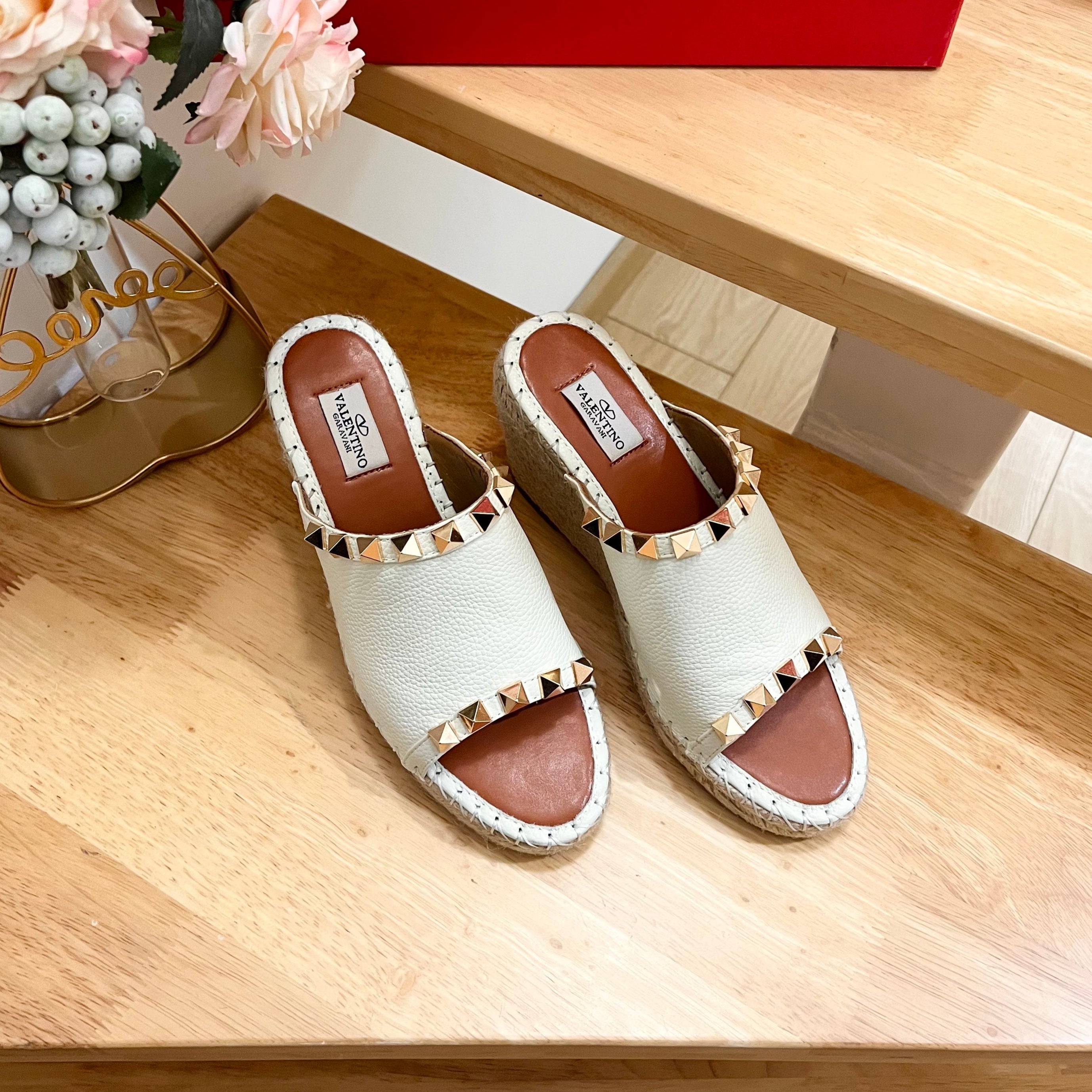 Valentino Rockstud Espadrille Sandals White Leather 240597