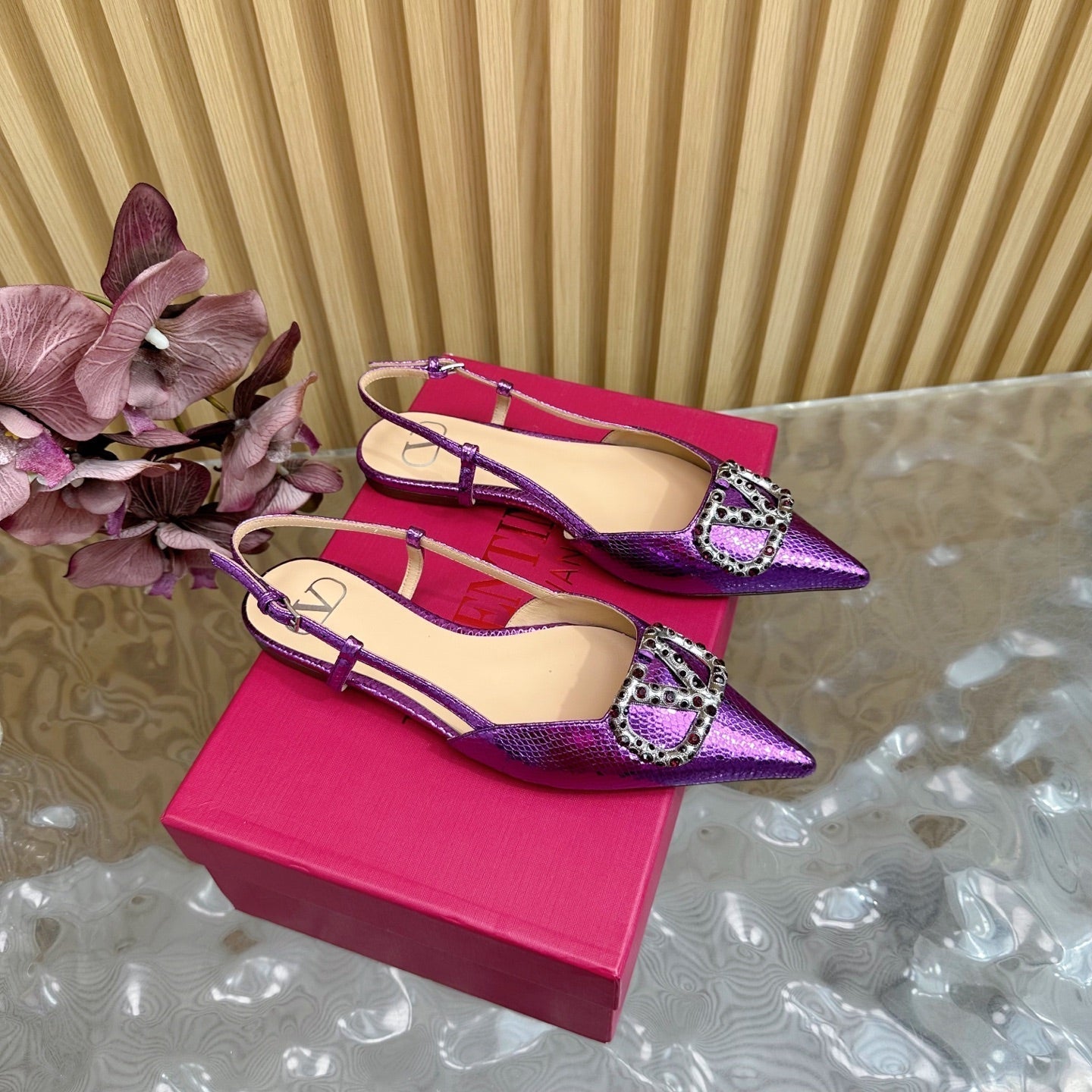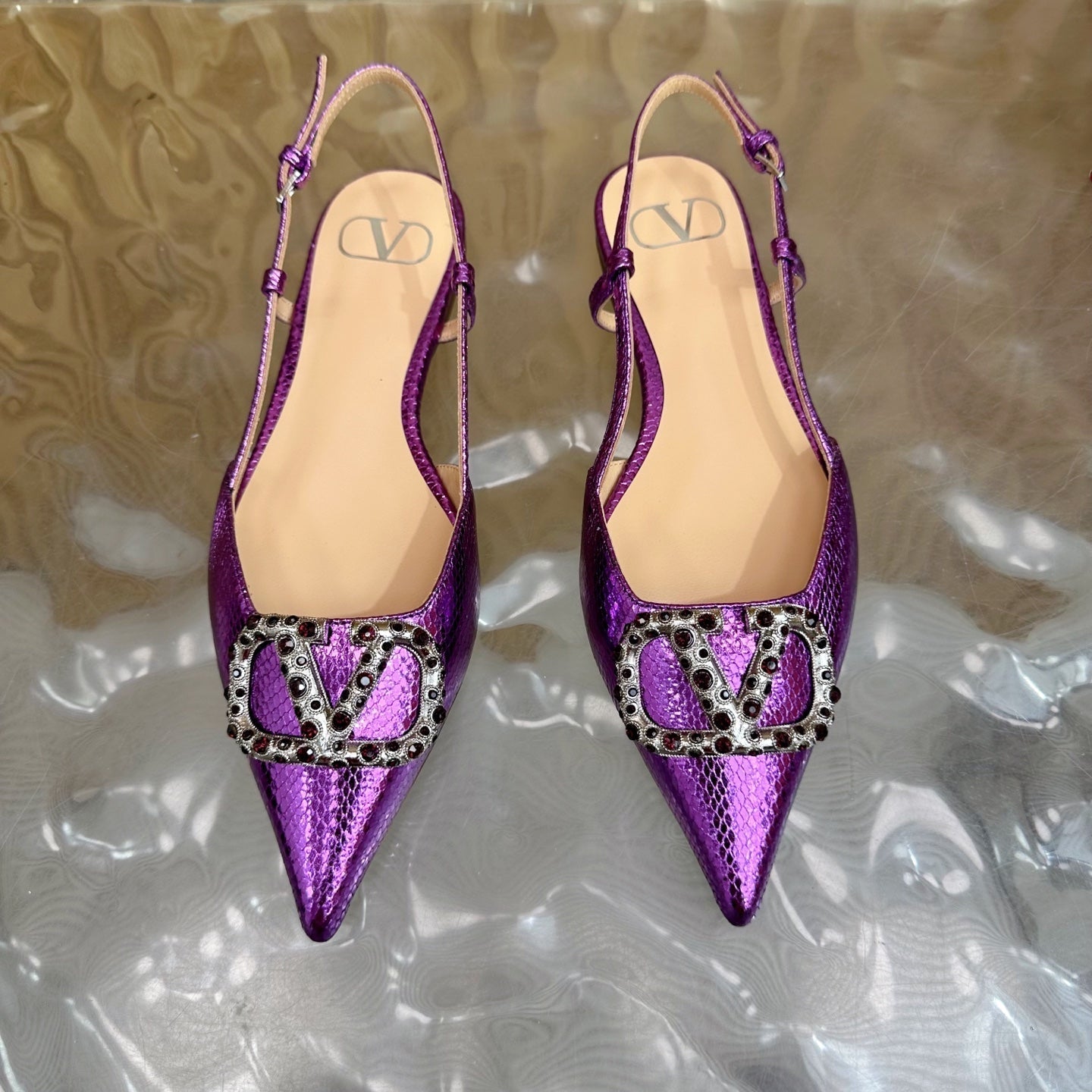 VT Slingback Flat Purple Snake-grain Leather