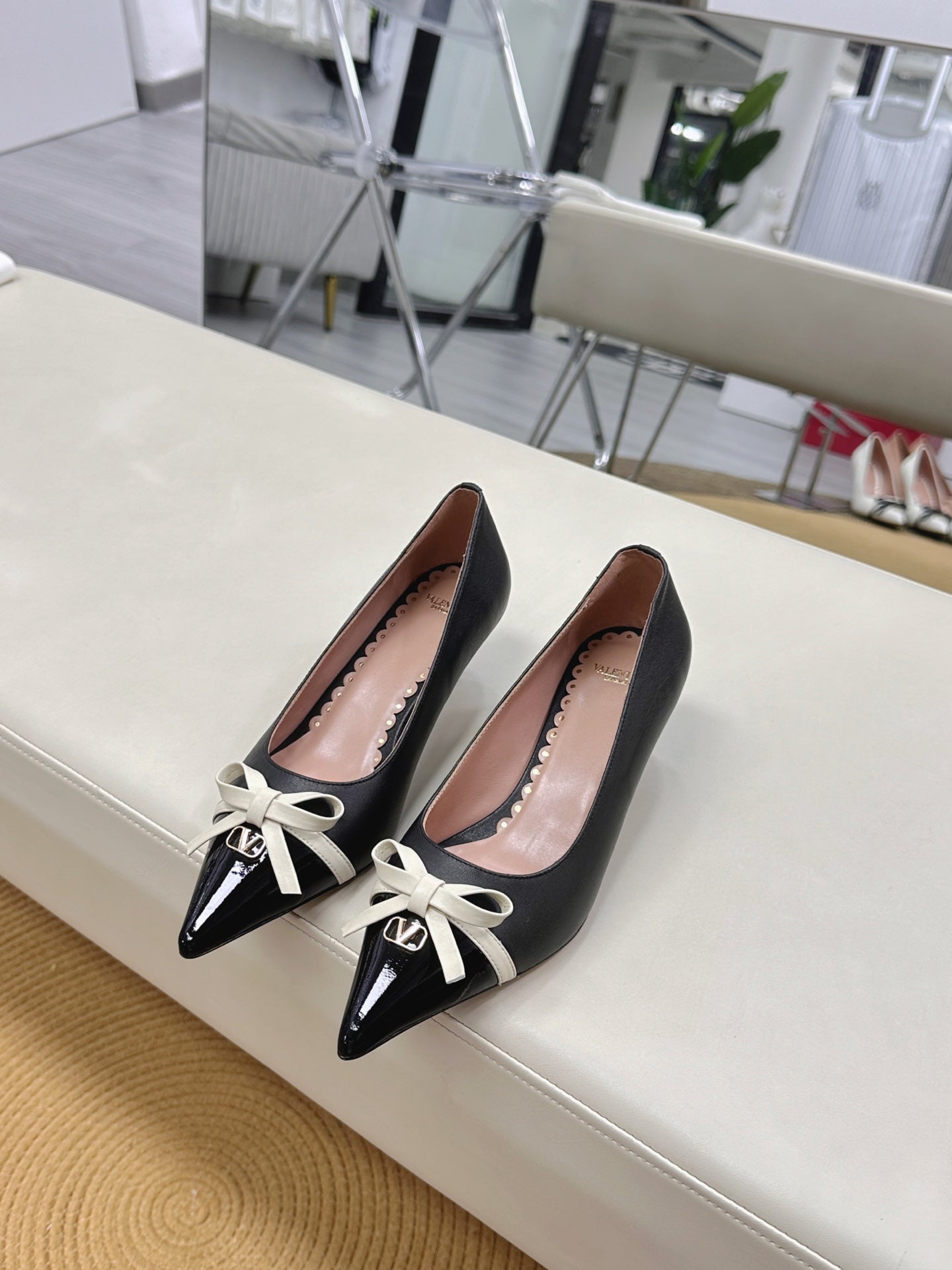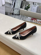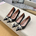 Bepointy Pump Bow In Black Cowhide And Patent Leather Pale Pink Sheepskin Linning 304254