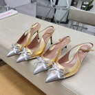 Bepointy Slingback Pumps Bow In Gold Mix Silver Metaliic Cowhide Pale Pink Sheepskin Linning 304248
