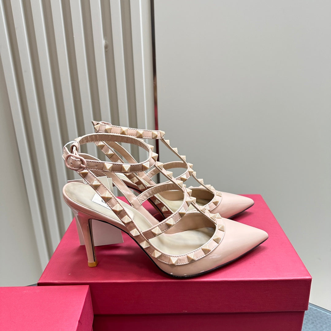 Rockstud Slingback 95mm Pink Patent Calfskin
