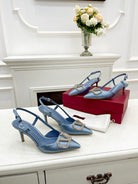 Valentino 25 Vlogo Signature Slingback Pumps Blue Pastel Silk 239503