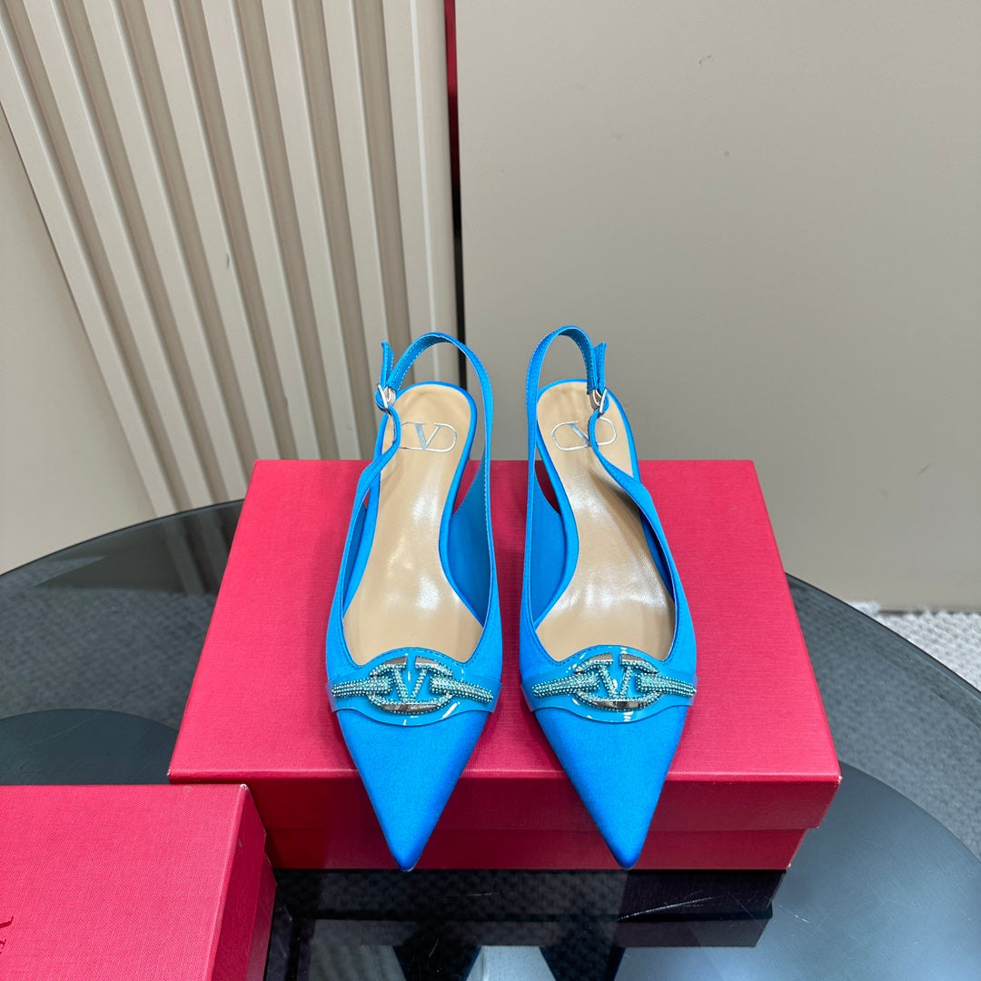 Valentino Slingback Pump 40mm In Blue Mix Beige Lambskin 999009