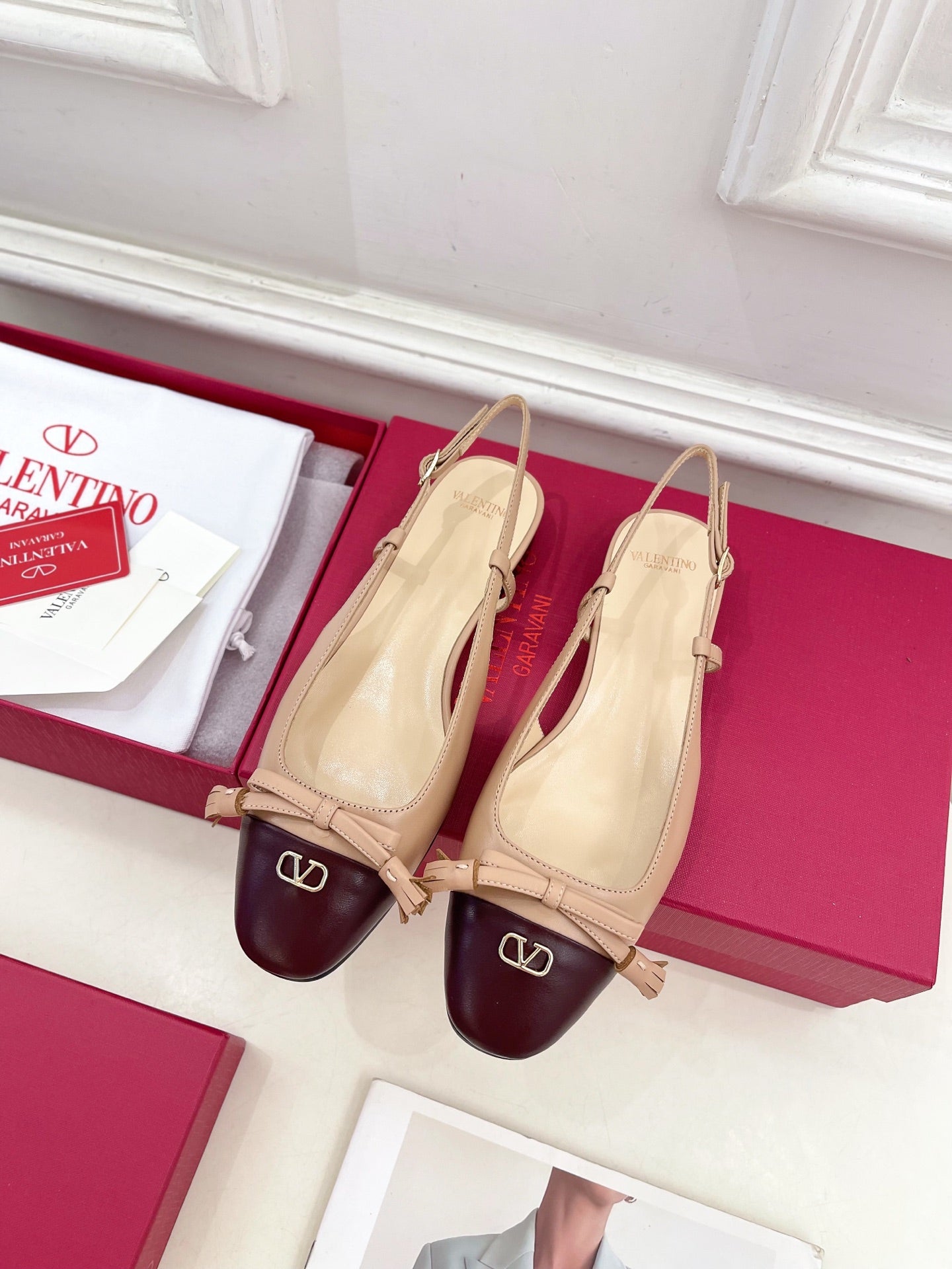 Valet Du Roi Slingback Pumps 20mm Beige Burgundy Goatskin 307483
