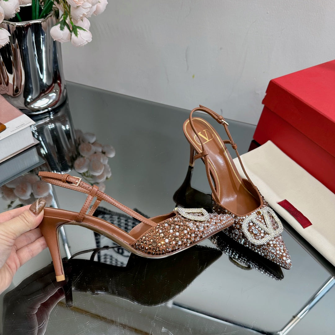 Vlogo Signature Slingback 70 Chocolate Calfskin With Crystals