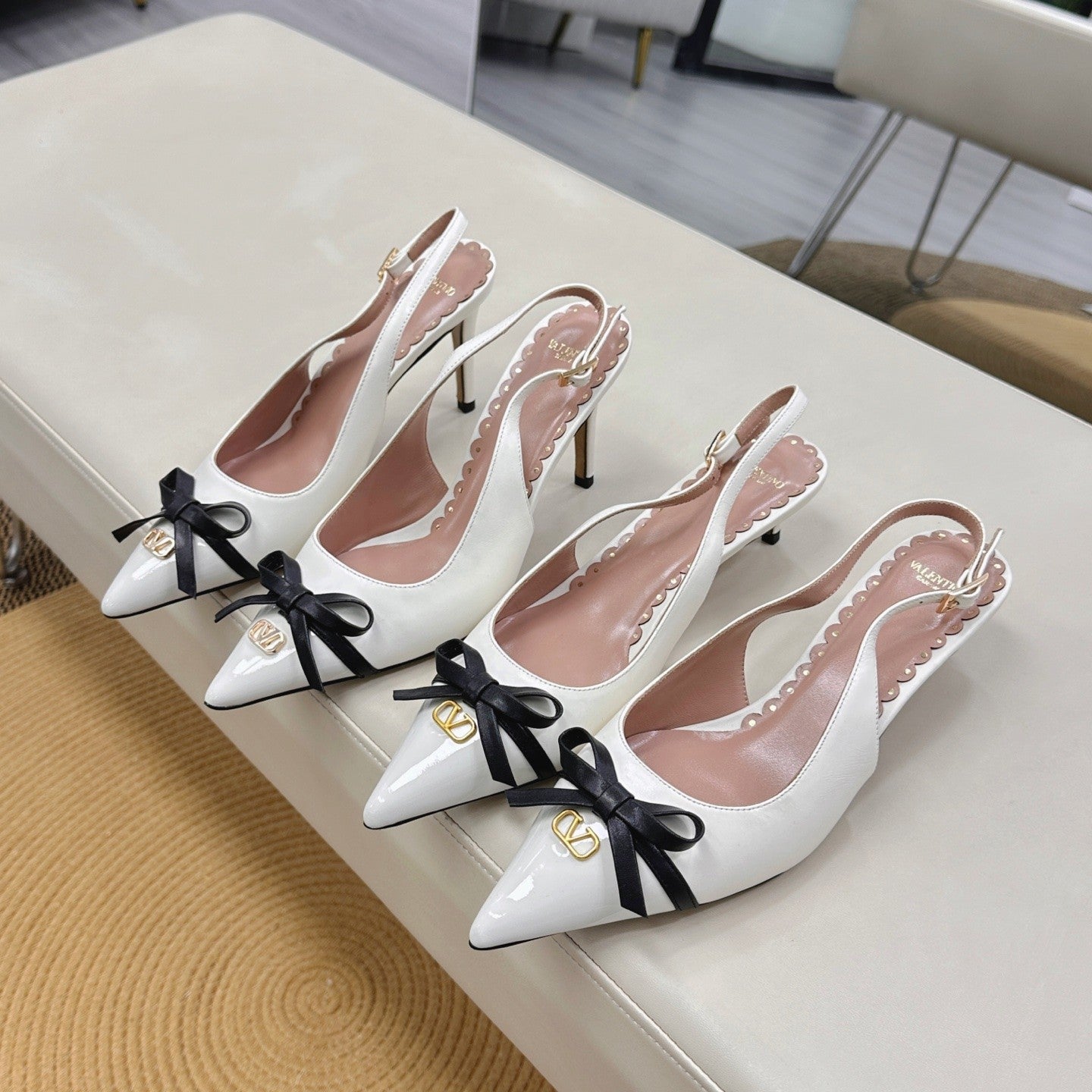 Bepointy Slingback Pumps Bow In White Cowhide And Patent Leather Pale Pink Sheepskin Linning 304260