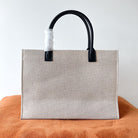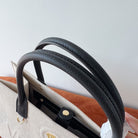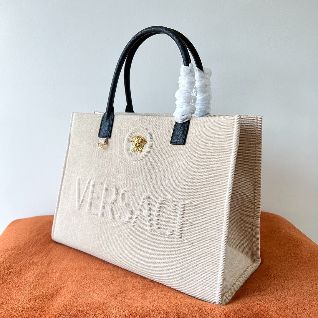 Versace Beige Denim Canvas Tote Bag 40 With Black Cowhide Handle 175561
