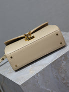 CASSANDRA MINI TOP HANDLE BAG 20 IN BEIGE CALFSKIN GOLD HARDWARE