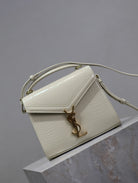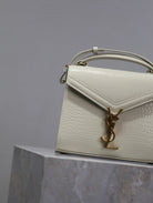 CASSANDRA MINI TOP HANDLE BAG 20 IN WHITE CROCODILE-EMBOSSED GLOSSY CALFSKIN