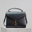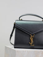 CASSANDRA TOP HANDLE BAG 24 IN BLACK CALFSKIN GOLD HARDWARE