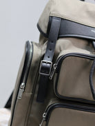 CITY MULTI-POCKET BACKPACK 42 IN KHAKI GREEN NYLON AND BLACK SMOOTH CALFSKIN