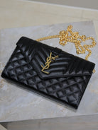 ENVELOPE CHAIN BAG 22 IN BLACK LAMBSKIN GOLD HARDWARE