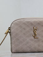 GABY ZIPPED POUCH 19 IN GRAY MATTE SUEDE GOLD HARDWARE
