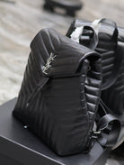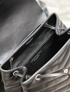 LOU BACKPACK 33 IN BLACK QUILTED CALFSKIN SILVER HARDWARE
