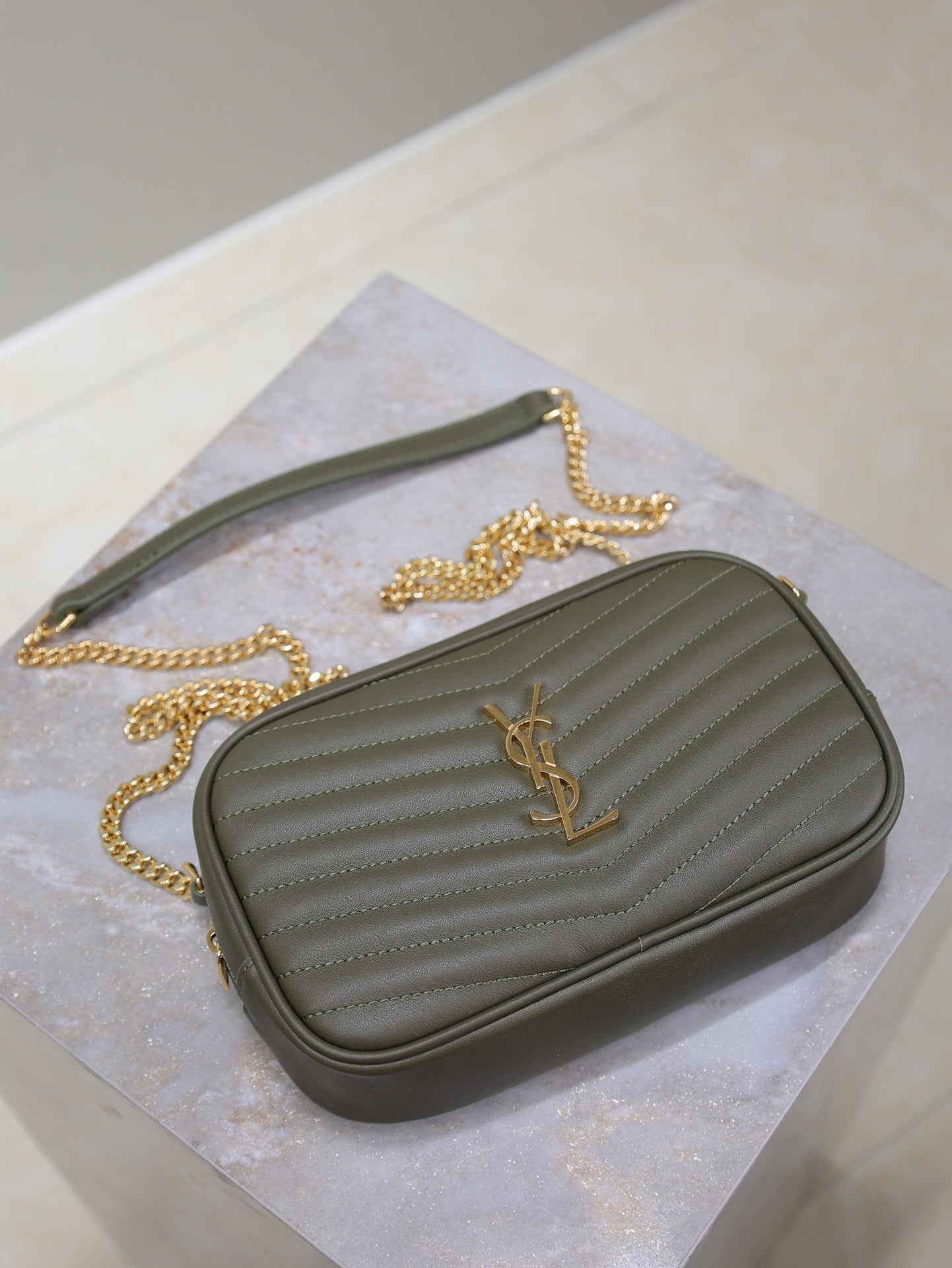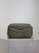 LOU MINI CAMERA BAG 18 IN KOMBU GREEN QUILTED CALFSKIN