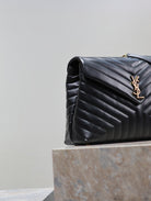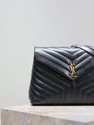 LOULOU LARGE 36 IN BLACK QUILTED CALFSKIN GOLD HARDWARE